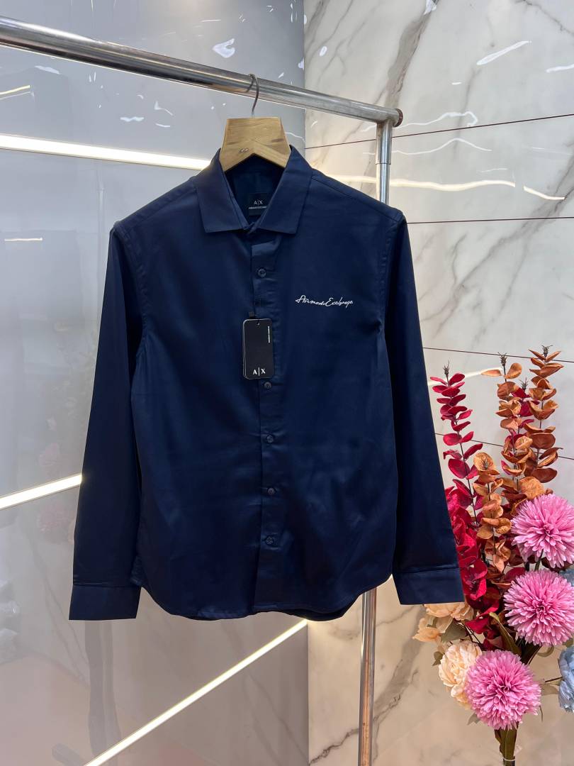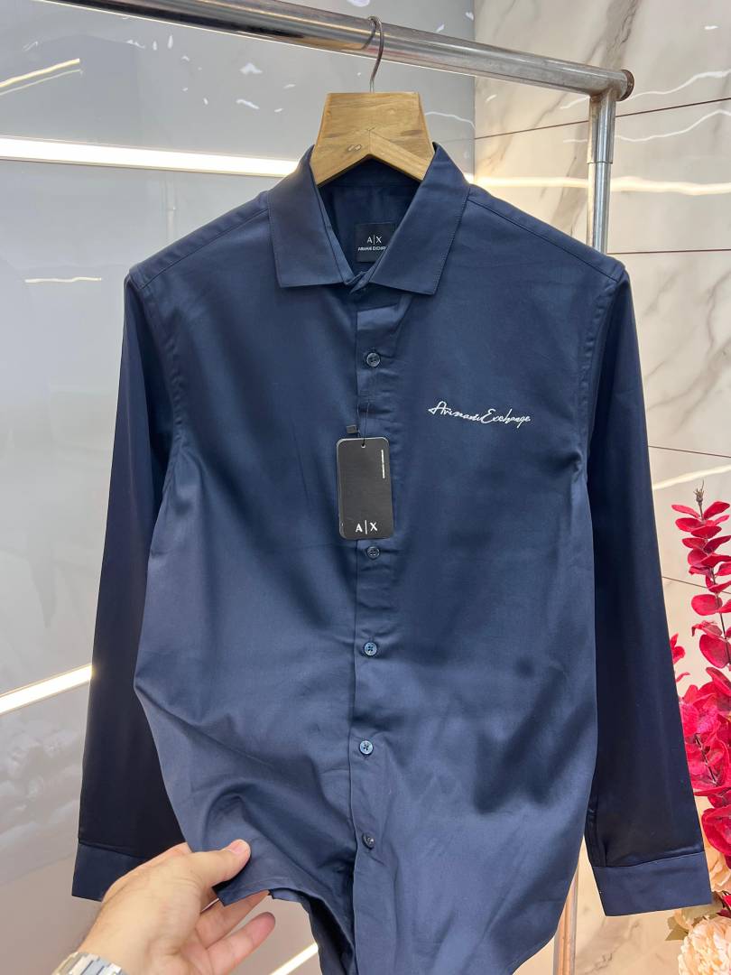 Arman i Exchange Navy Premium Embroidered Logo Shirt With custom Branded Button Tagging And Brand Packing 3267