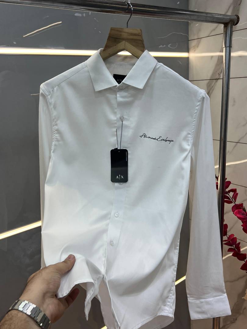 Arman i Exchange White Premium Embroidered Logo Shirt With custom Branded Button Tagging And Brand Packing 3266