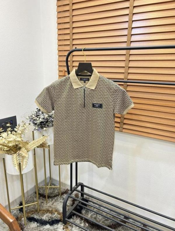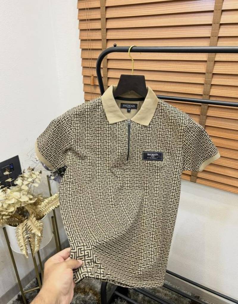 Balmai_n All Over Monogram Printed Premium Zipper Polo T-shirt