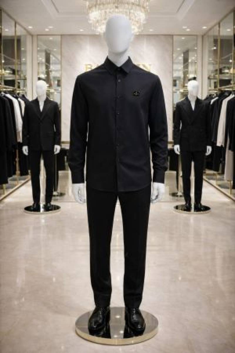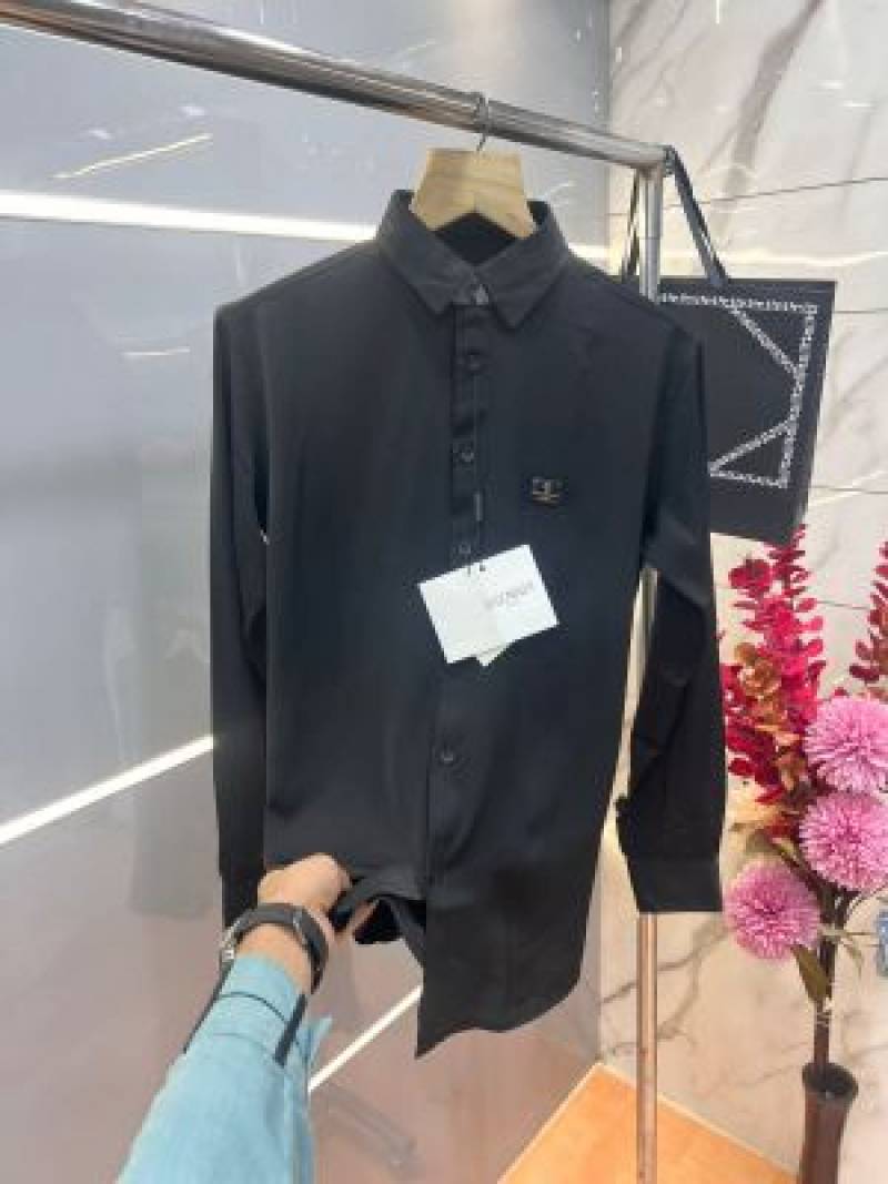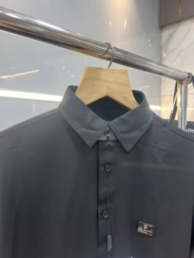 Balmai n Paris Black Premium Imported Japanese lycra fabric Shirt with Metal Logo And Brand Packing 3670