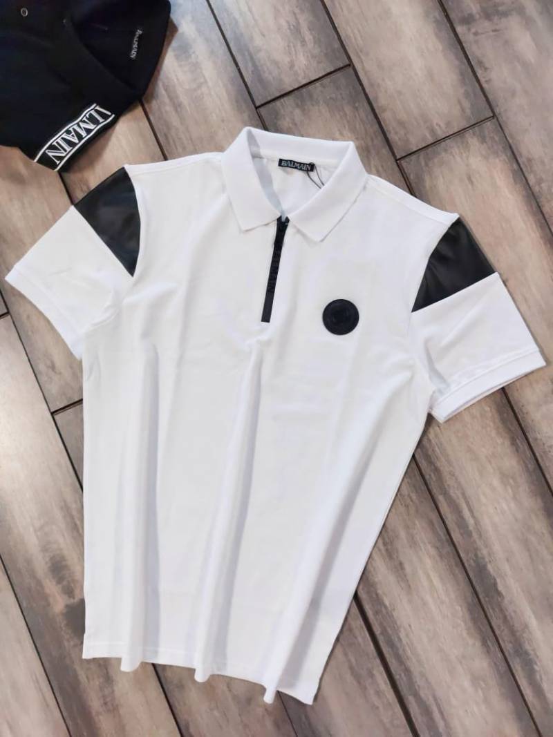 Balmai n Paris White Imported Premium Polo Collar Neck T-shirt F3506-W1