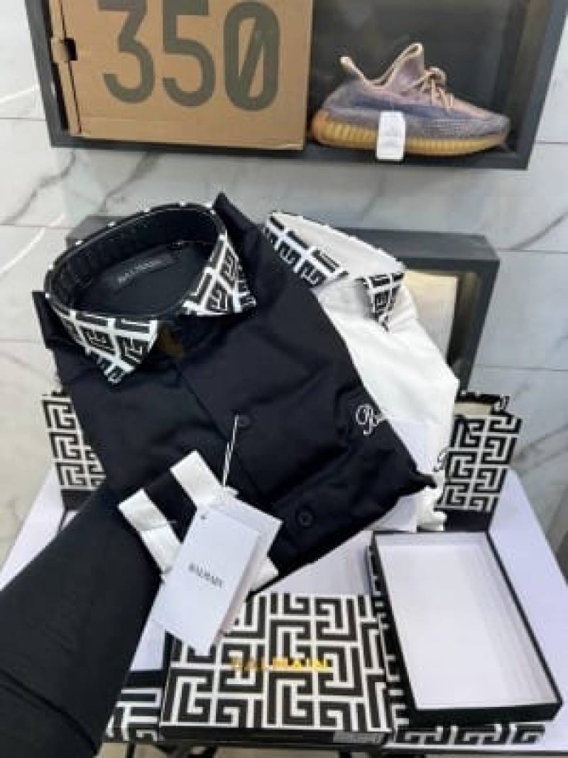 BALMAIN_PARIS_BLACK_EMBROIDERY_PRINT_DESIGNER_PREMIUM_SHIRTS_WITH_PREMIUM_BOX_PACKING_&_CARRY_BAG_(699)