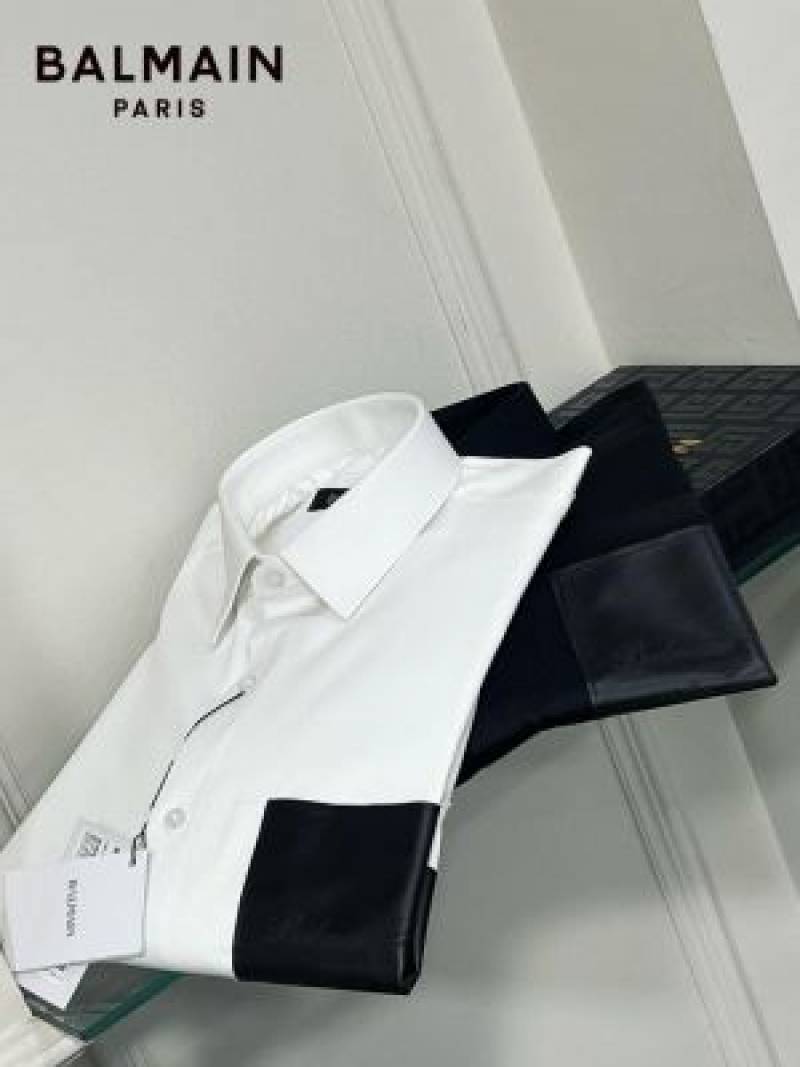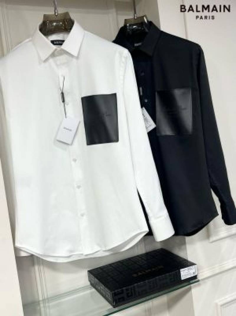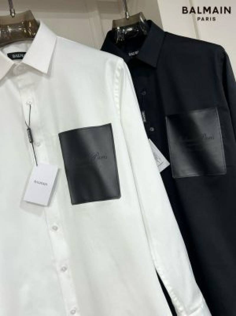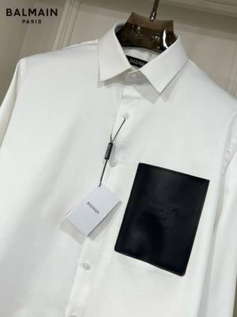 BALMAIN_PARIS_WHITE_PATCH_LOGO_PRINT_PREMIUM_IMPORTED_SHIRTS_WITH_BOX_PACKING_AND_CARRY_BAG_(1573)