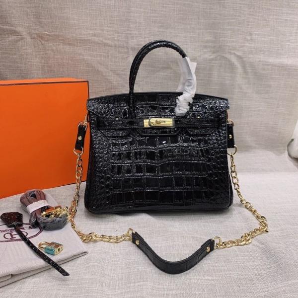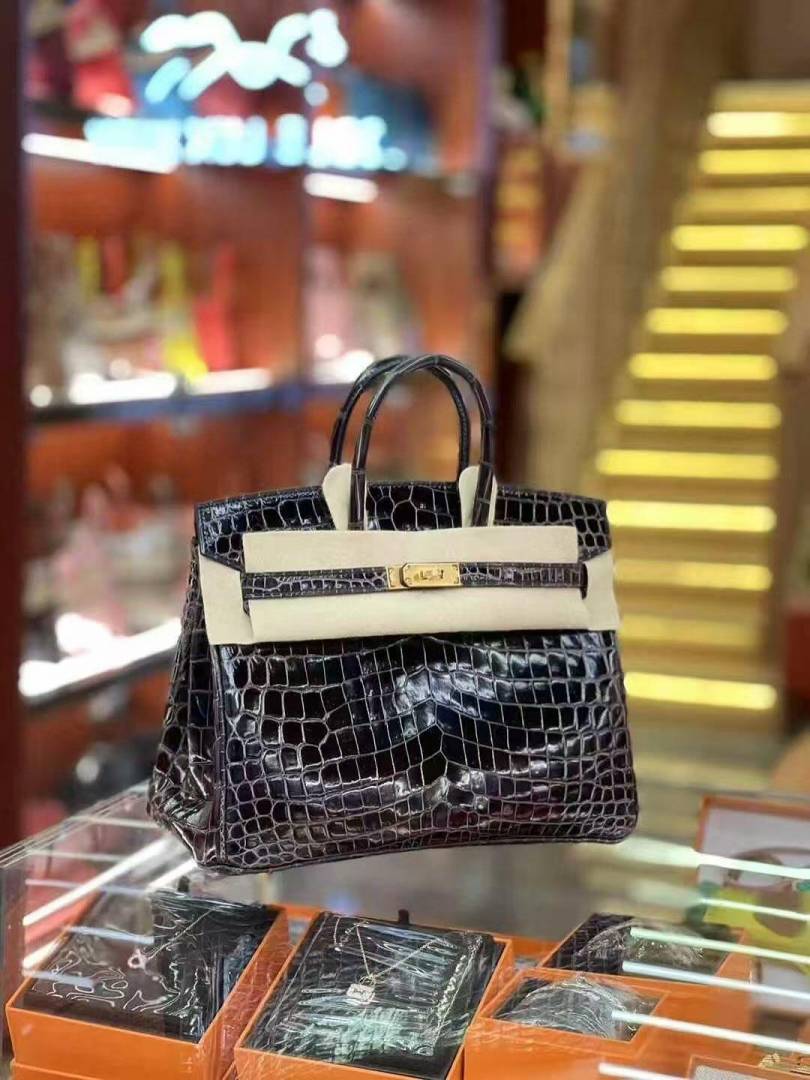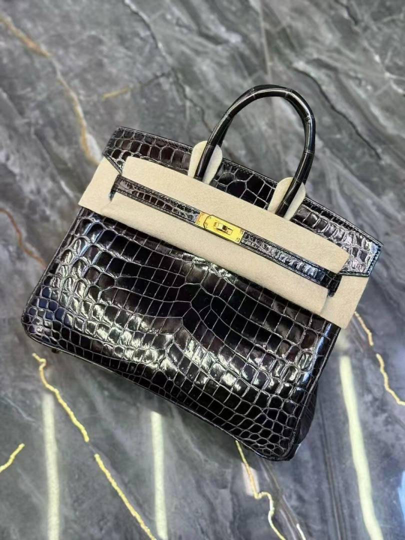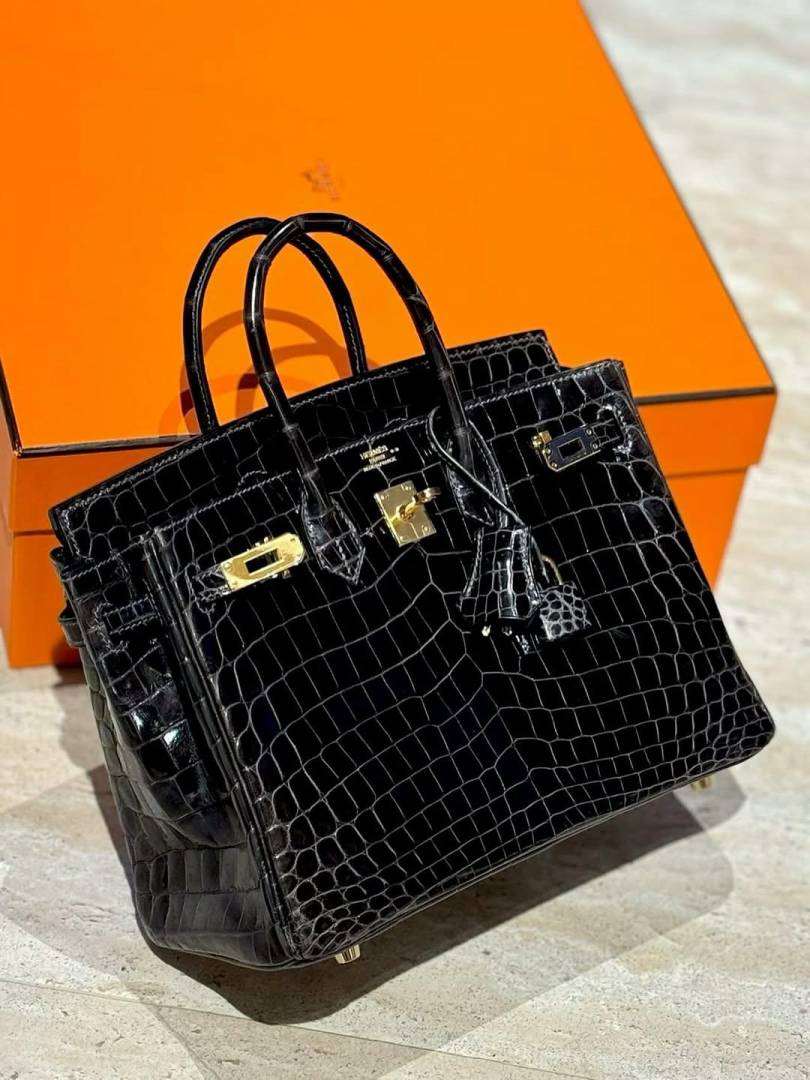 Herms Birkin HSS 25 Noir (Black)Bleu Saphir Crocodile Porosus Lisse Palladium Hardware 6002