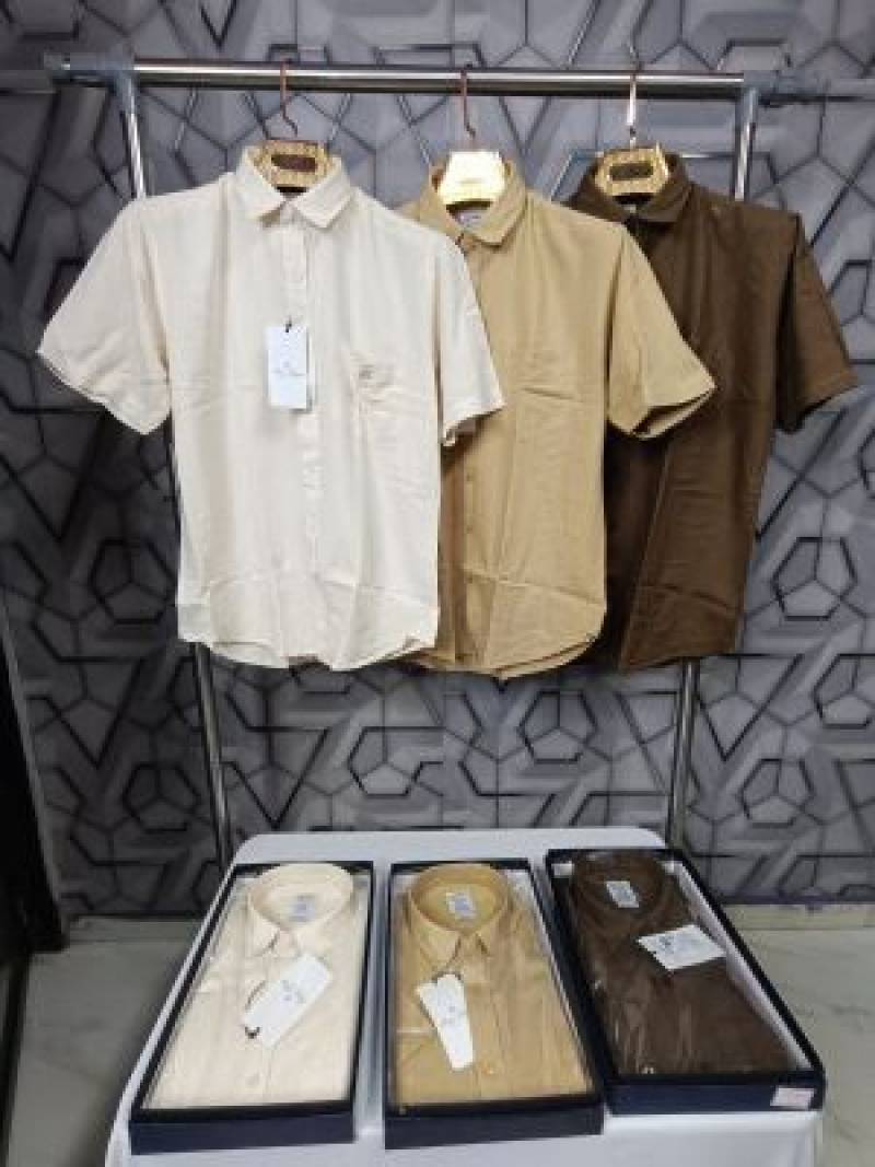 Burberr y Beige Premium Imported Embroidered Logo Shirt with custom Branded Button Tagging And Brand Packing 3253