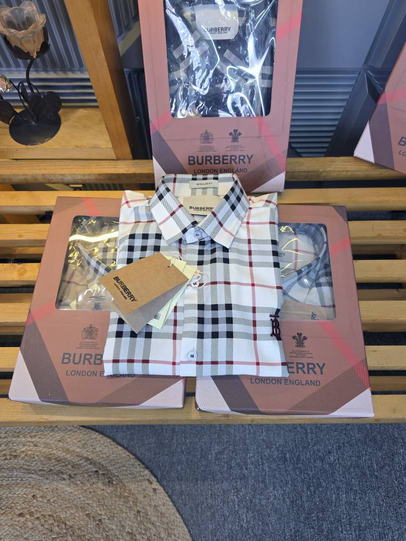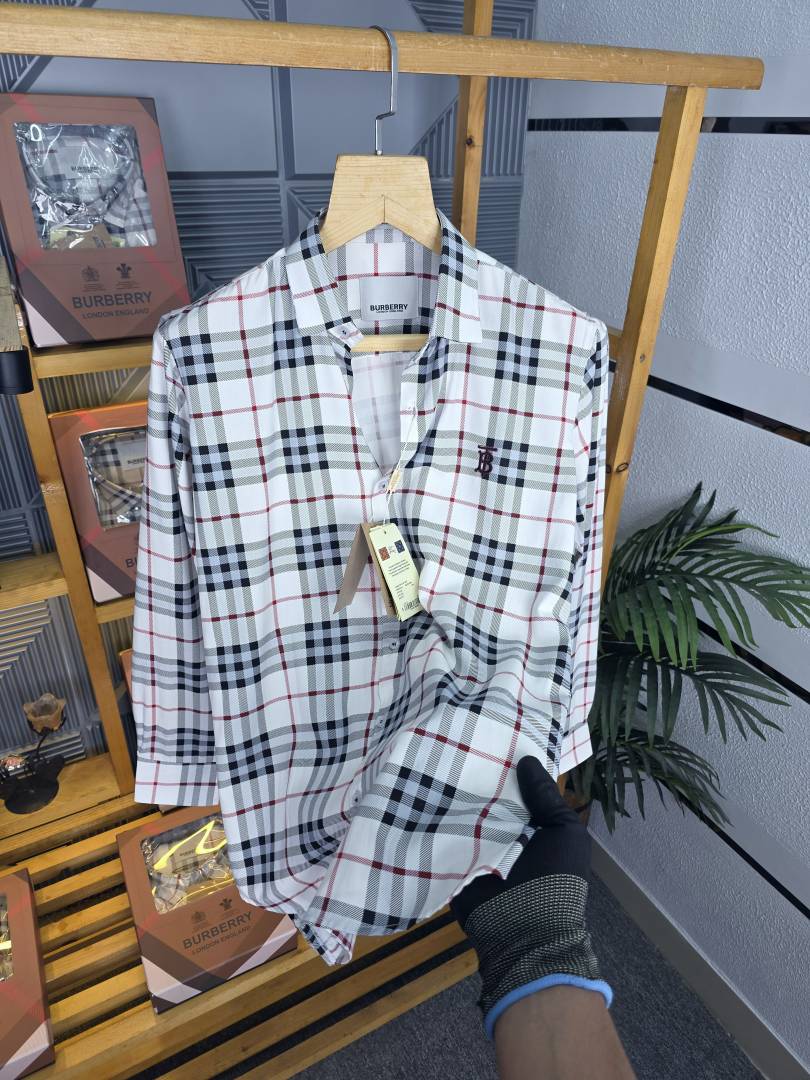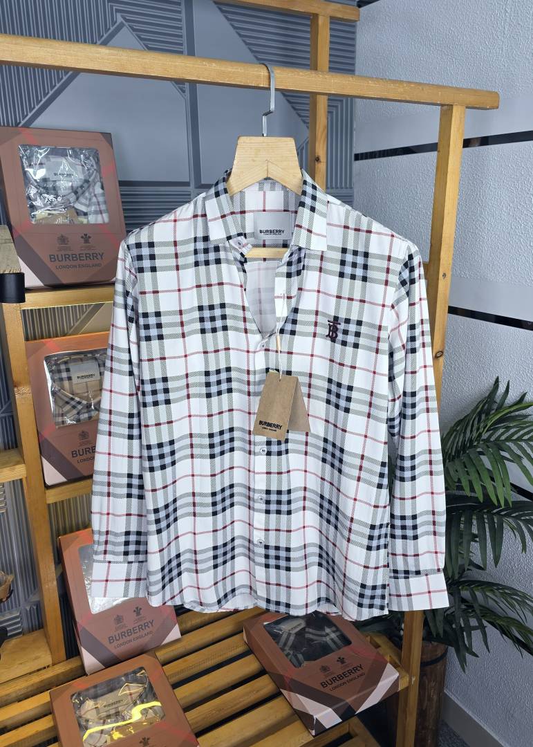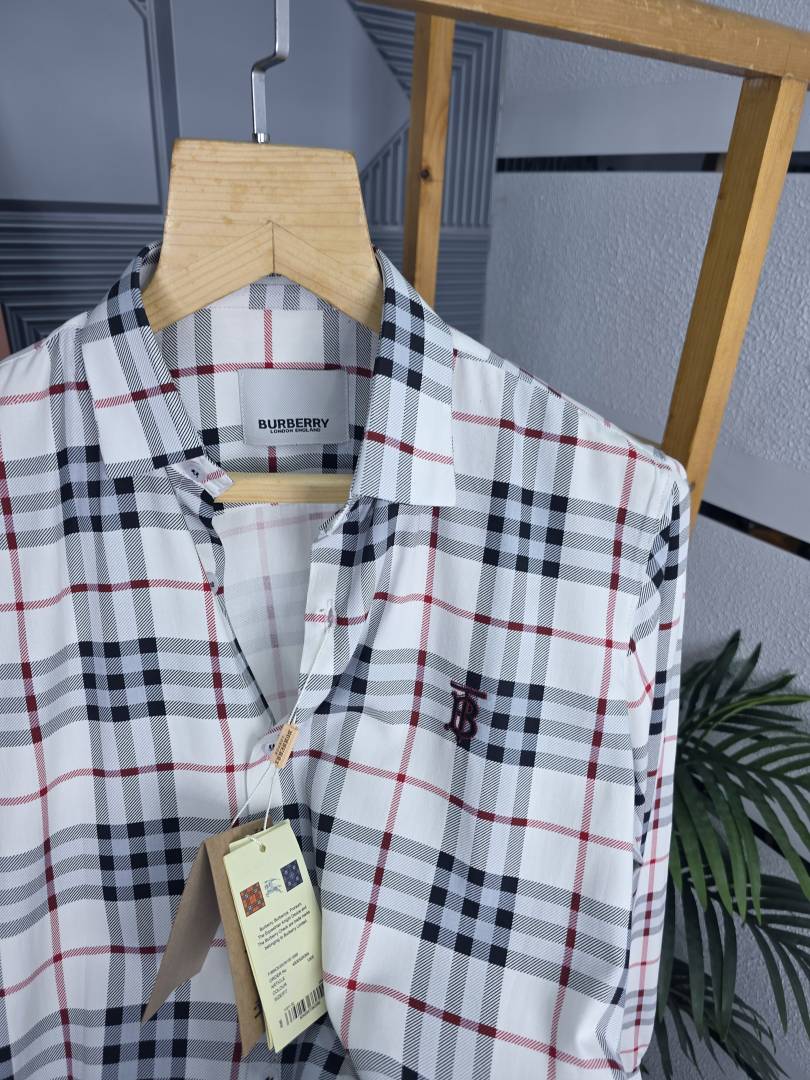 Burberr y Beige Premium Imported Embroidered Logo Shirt with custom Branded Button Tagging And Brand Packing 3253