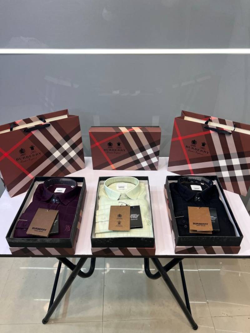 Burberr y Maroon Premium Imported Embroidered Logo Shirt with custom Branded Button Tagging And Brand Packing 3249