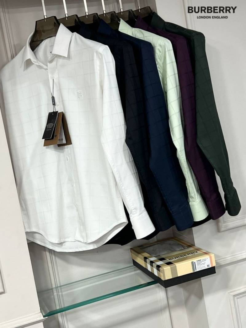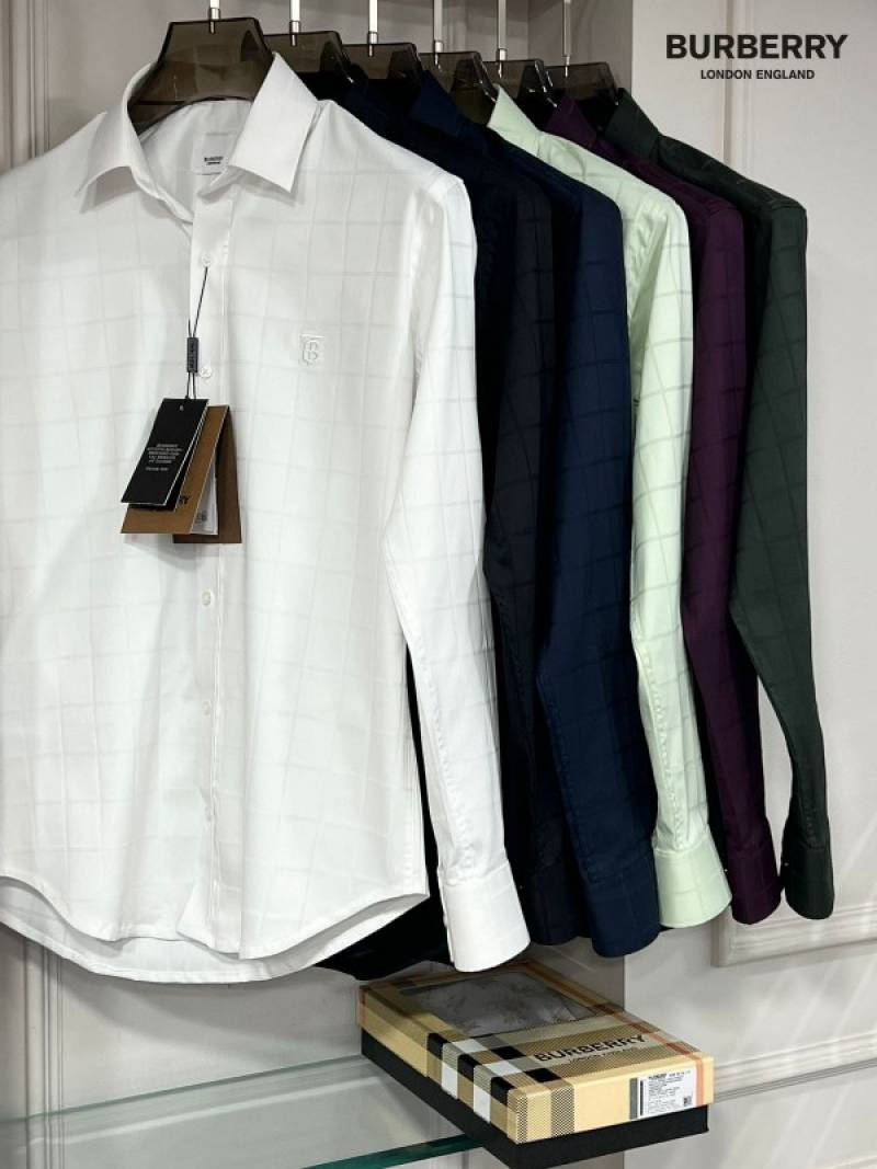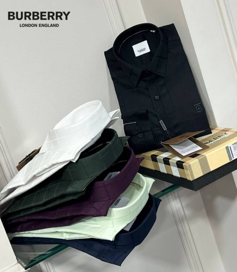 Burberr y Beige Premium Imported Embroidered Logo Shirt with custom Branded Button Tagging And Brand Packing 3253