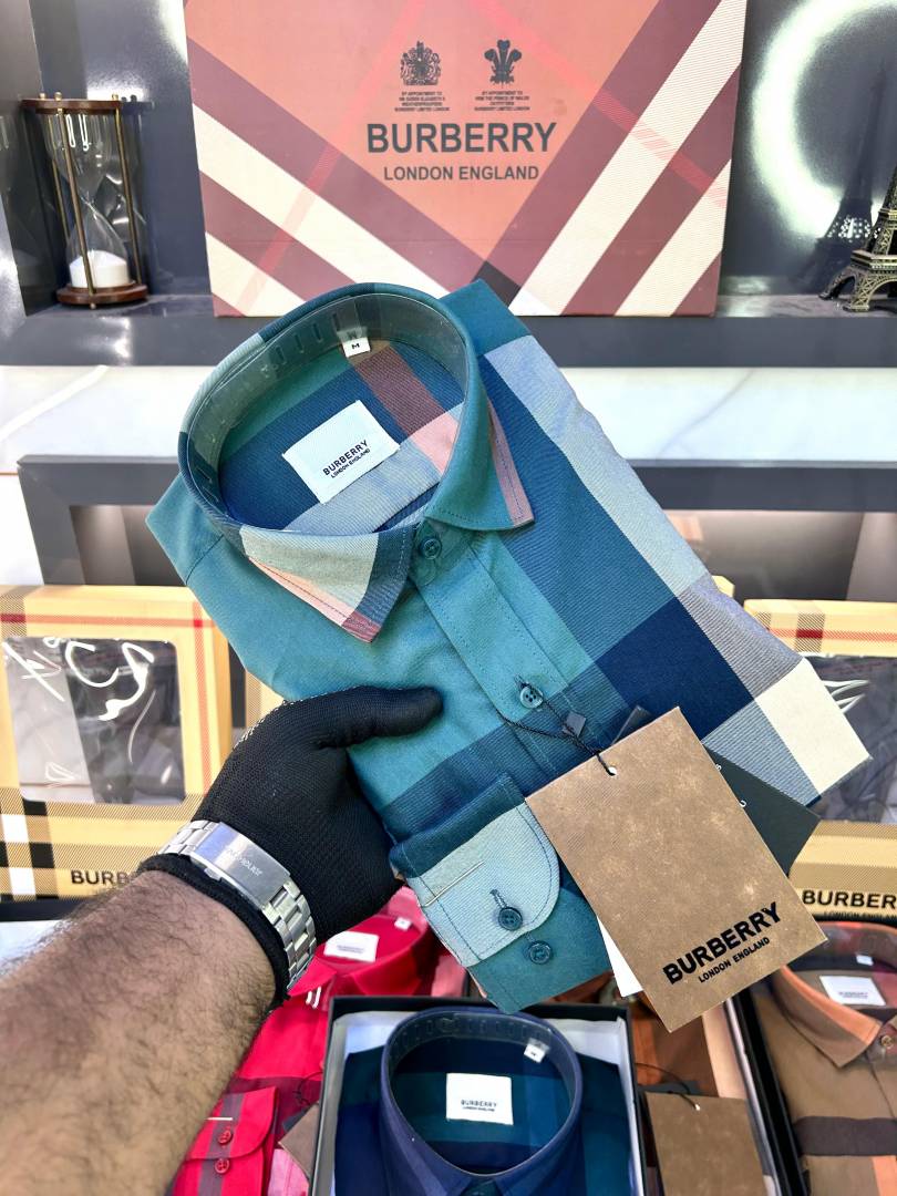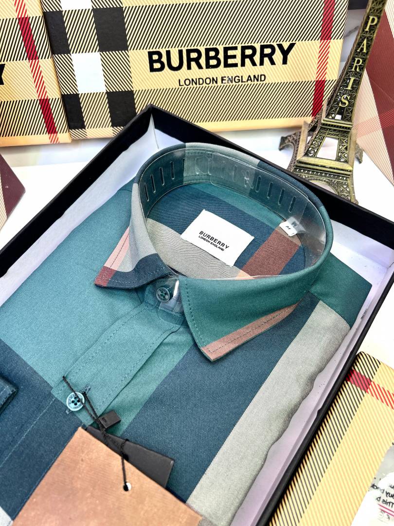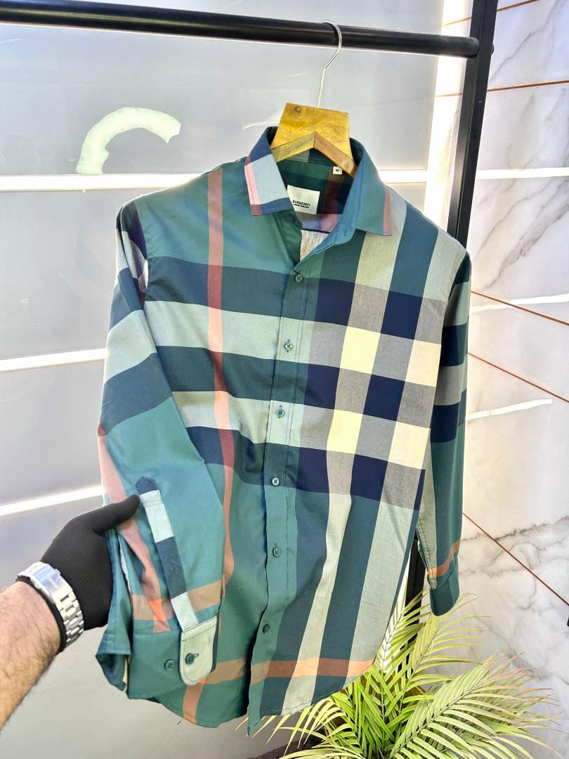 Burberr y Green Premium Checks Shirt With Brand Box Packing and carry bag F2853-GR