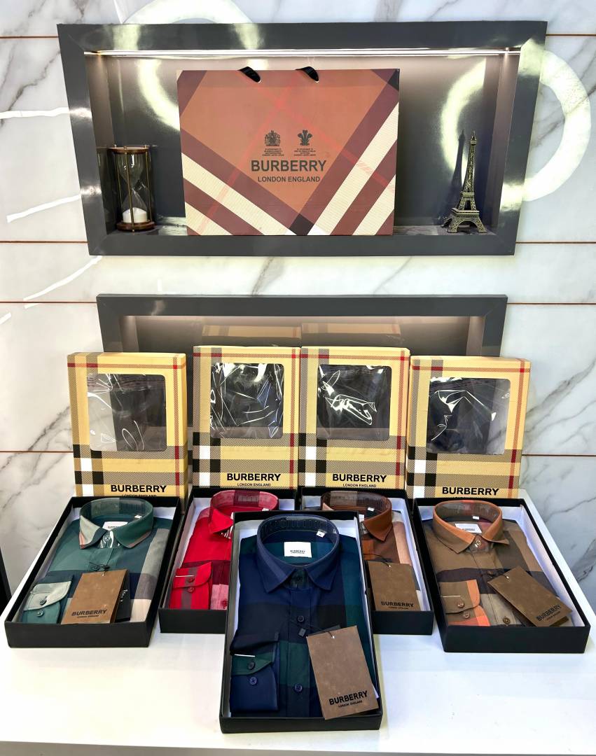 Burberr y Grey Premium Shirt With Brand Box Packing and Carry Bag F1946-GY