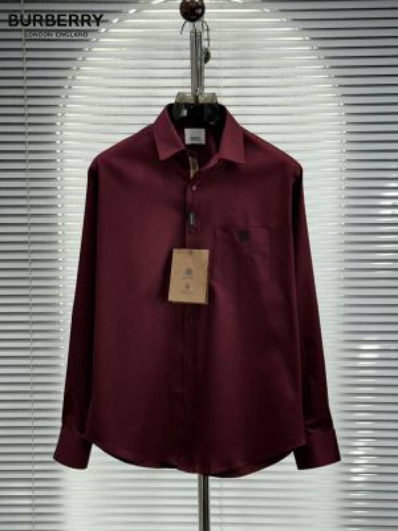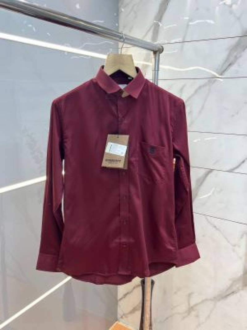 Burberr y Maroon Premium Embroidered Logo Shirt With custom Branded Button Tagging And Brand Packing 3750