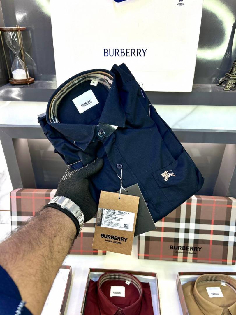 Burberr y Navy Premium Shirt With Brand Box Packing and Carry Bag F1946-NY