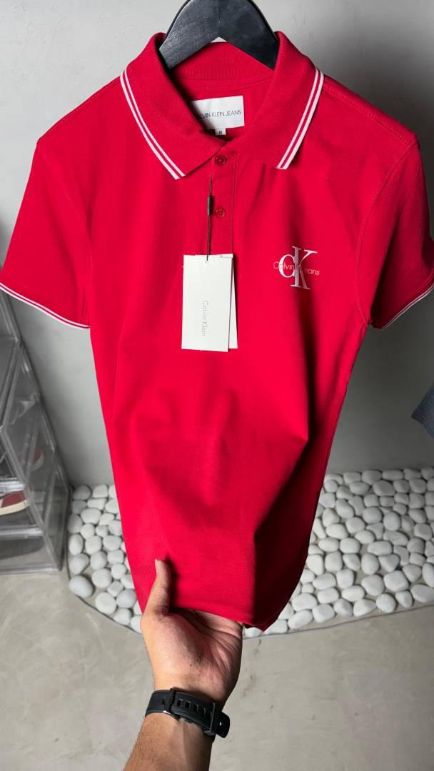Calvin Klei n Black Premium Imported 240 GSM Interlock Lycra Fabric Polo Tshirt with Shoulder Design and Emboss Logo 4070