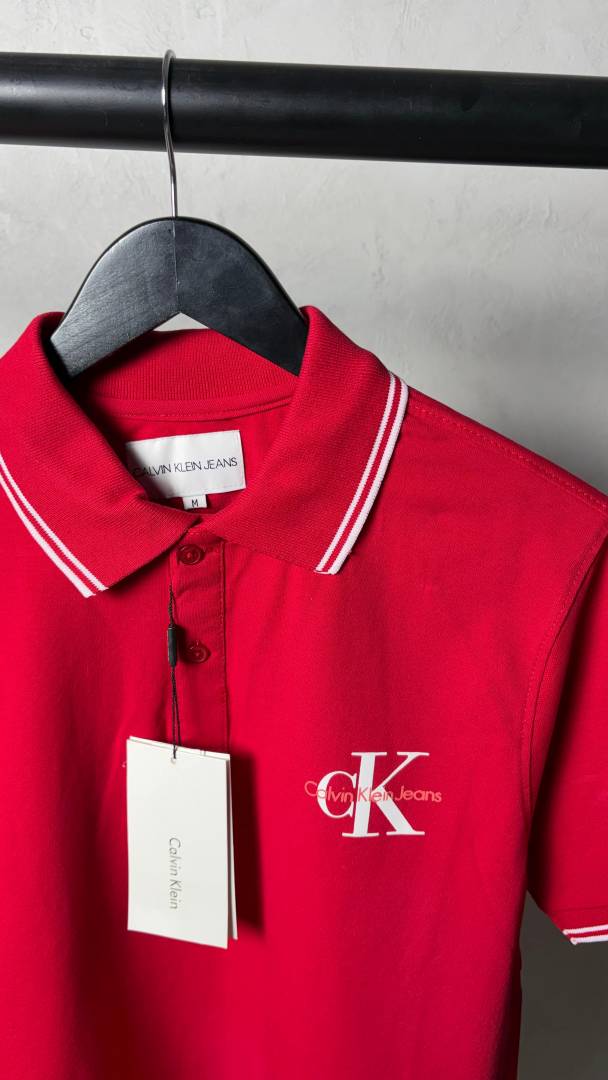 Calvin Klei n White Premium Imported 240 GSM Interlock Lycra Fabric Polo Tshirt with Front and Back Printed Logo 4066