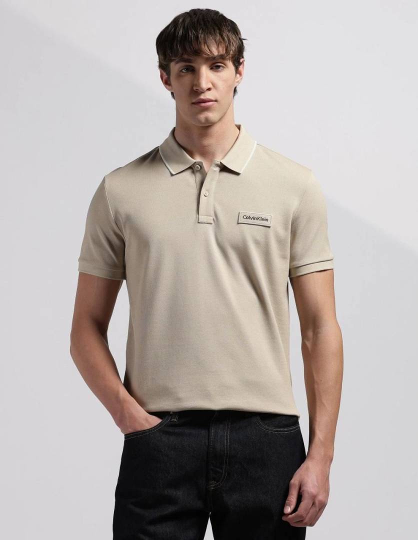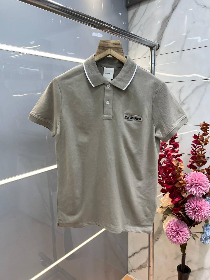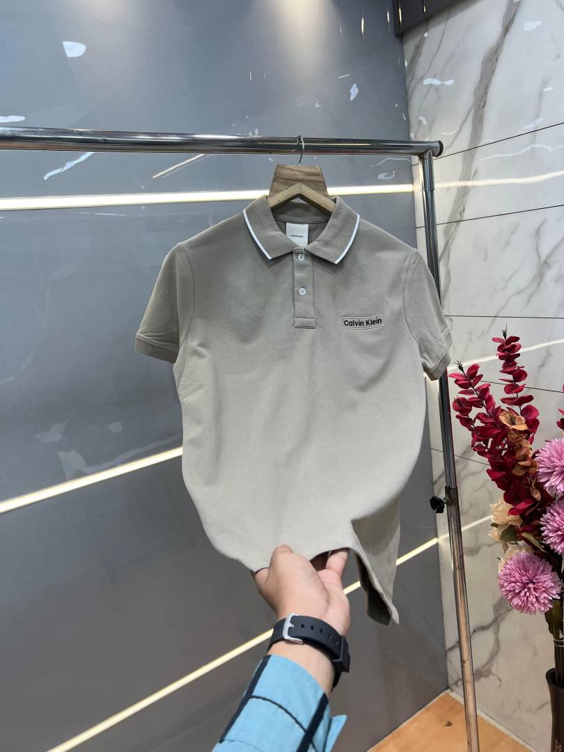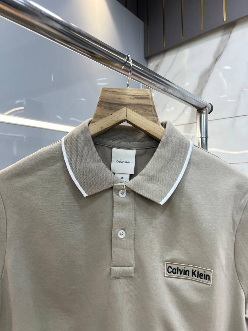 Calvin Klei n Beige Premium Imported 240 GSM Interlock Lycra Fabric Polo Tshirt with Collar Design and Embroidered Logo 4069