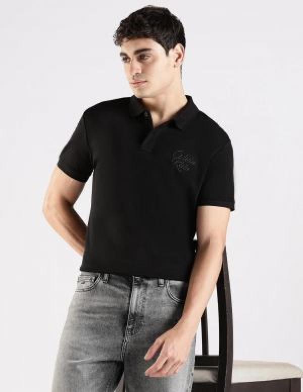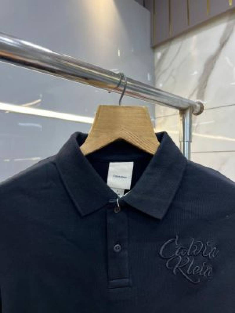 Calvin Klei n Black Premium Imported Compact Yarn 240 GSM Interlock Fabric Polo Tshirt with Embroidered Logo 3929