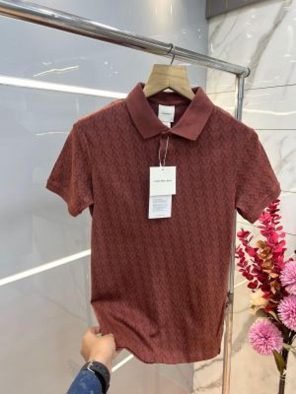 Calvin Klei n Rust Premium 240 gsm interlock compact cotton fabric Polo Tshirt with Allover Monogram Print 3738