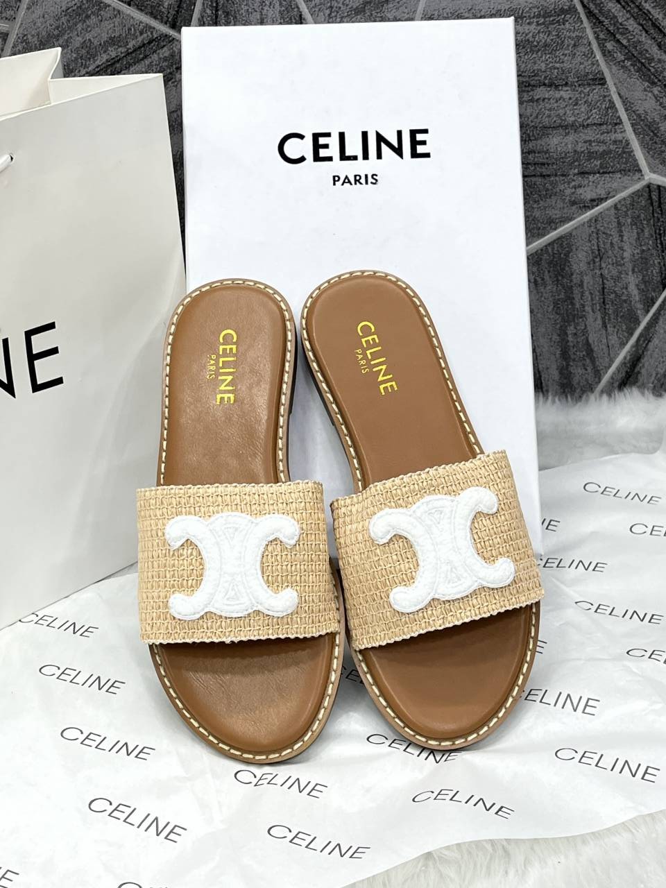 Celine Triomphe Woody Flats White For Woman With Original Box And Carry Bag