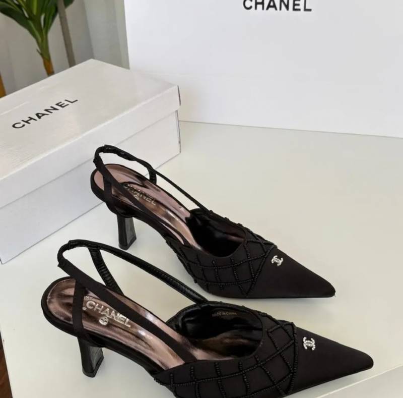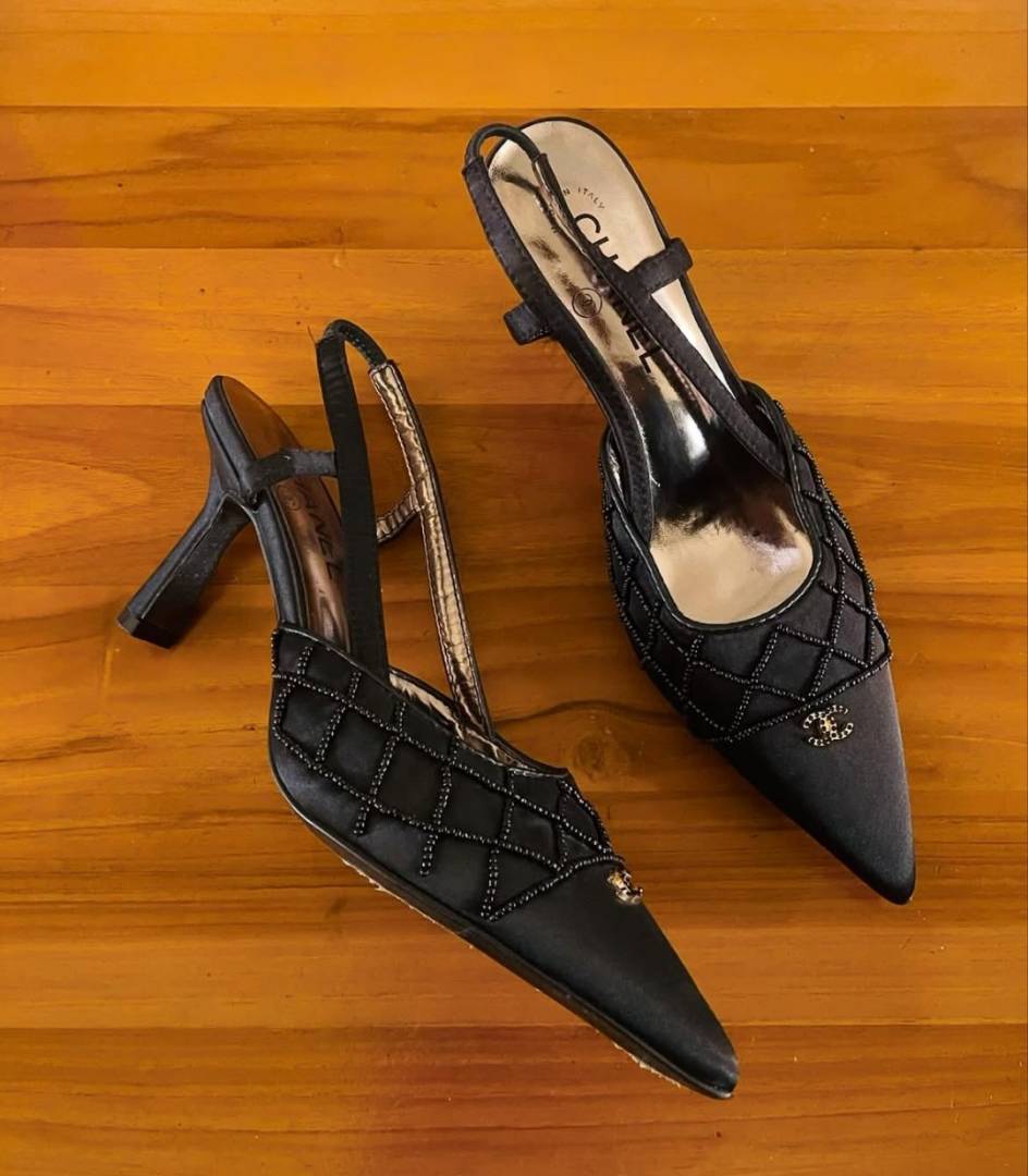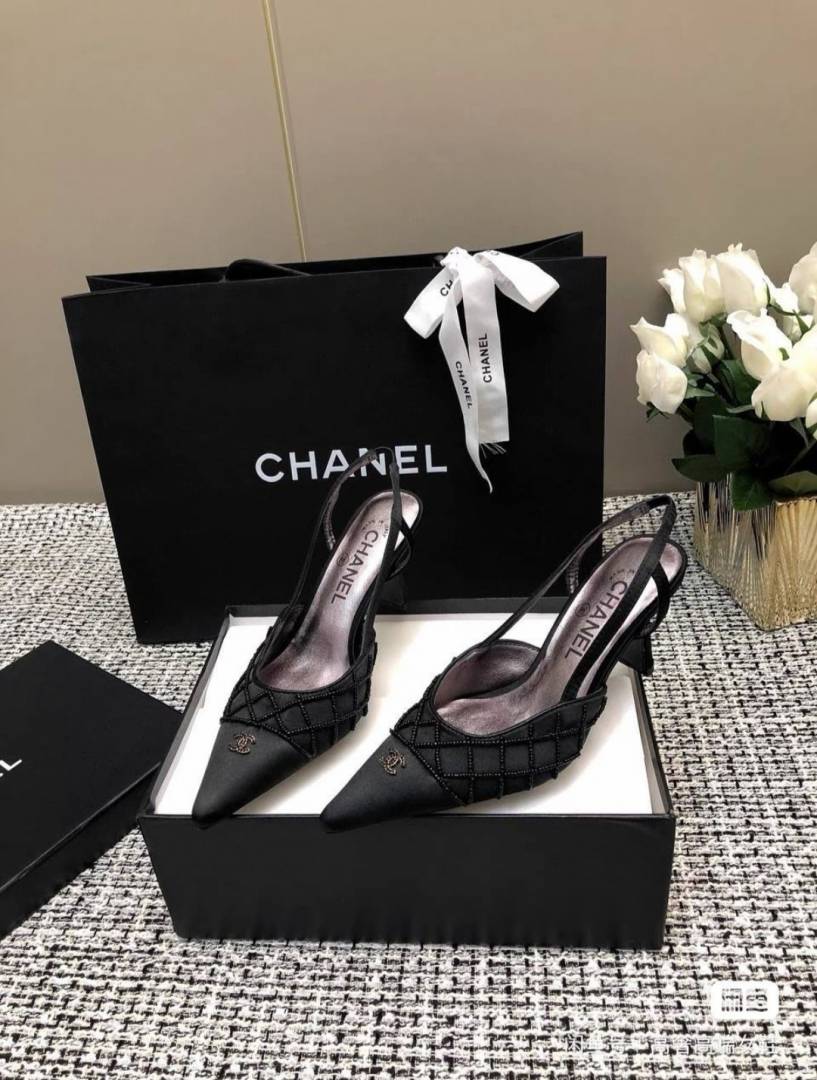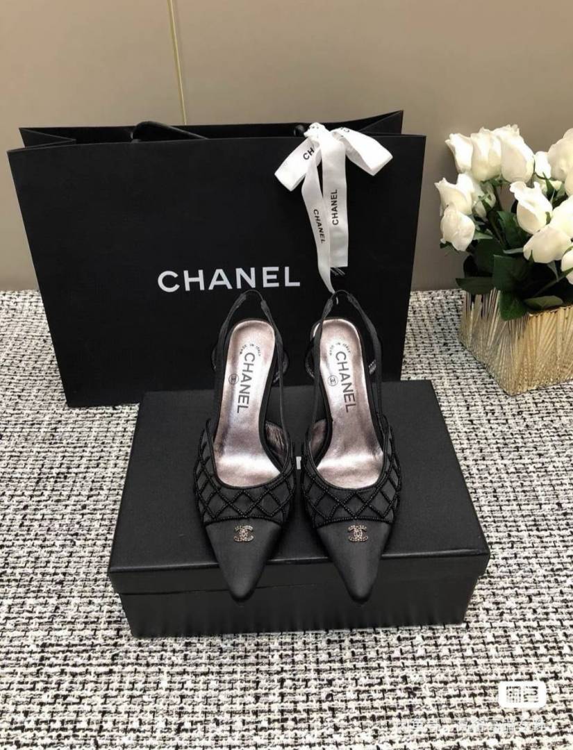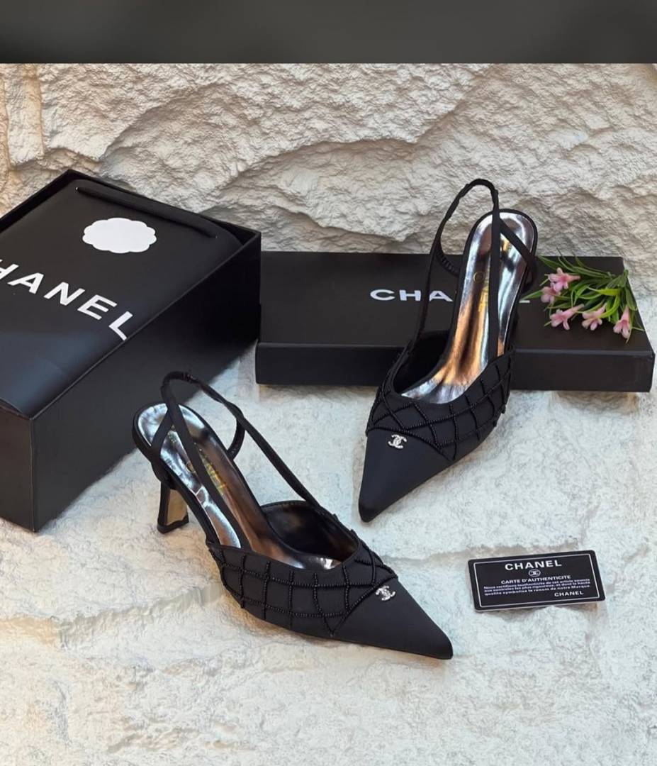 Chanel_Black_CC_Beads_Mesh_Slingback_Heels_Pump_For_Women_With_Original_Box_And_Carry_Bag