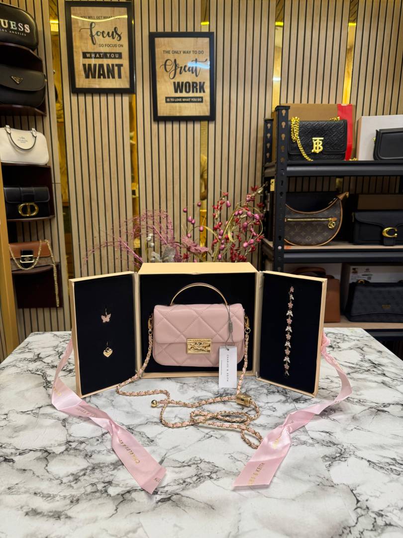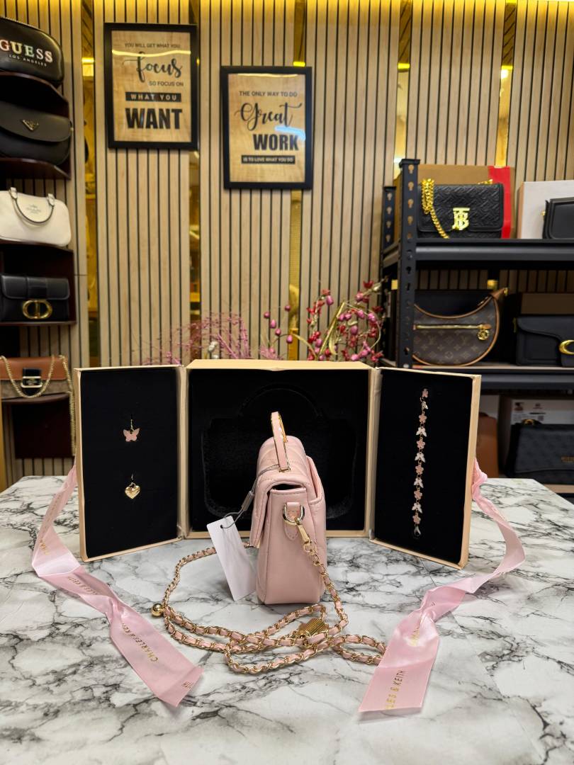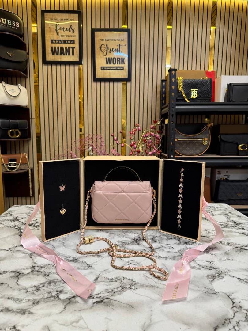 Charles & Keith Boxy Quilted Top Handle Bag Gift Set (Pink)