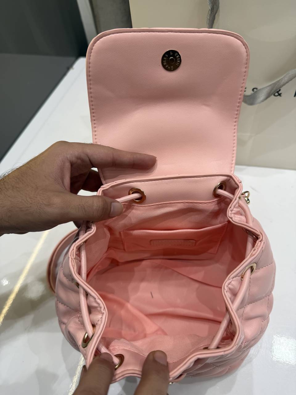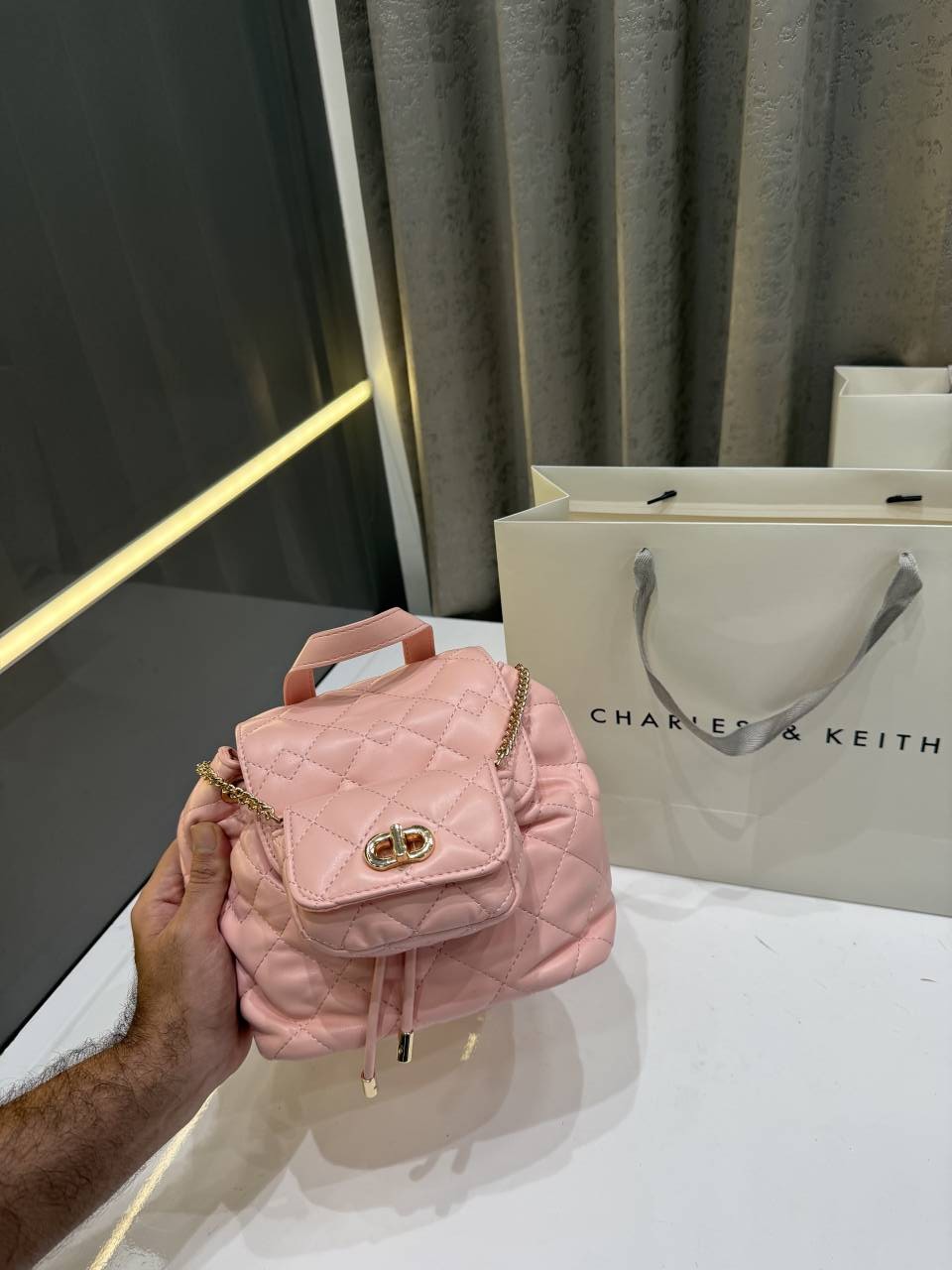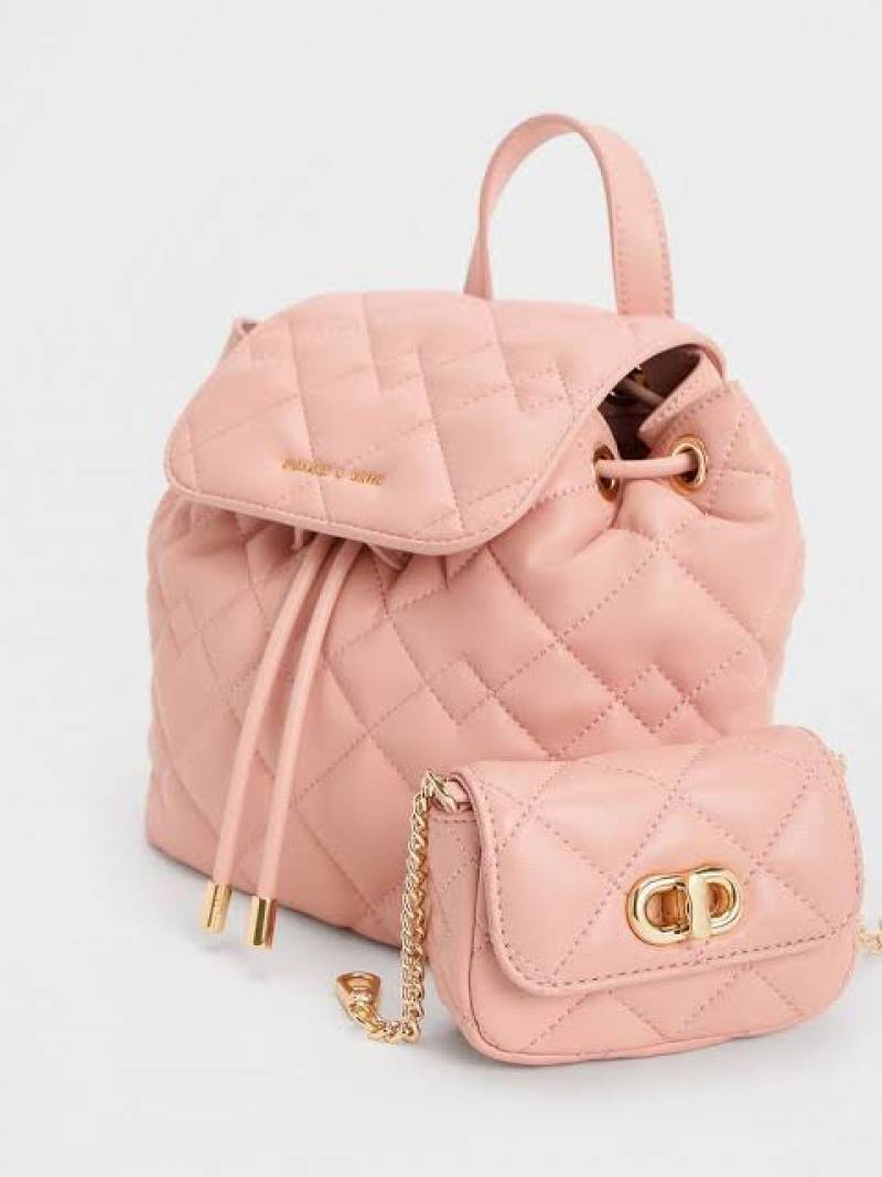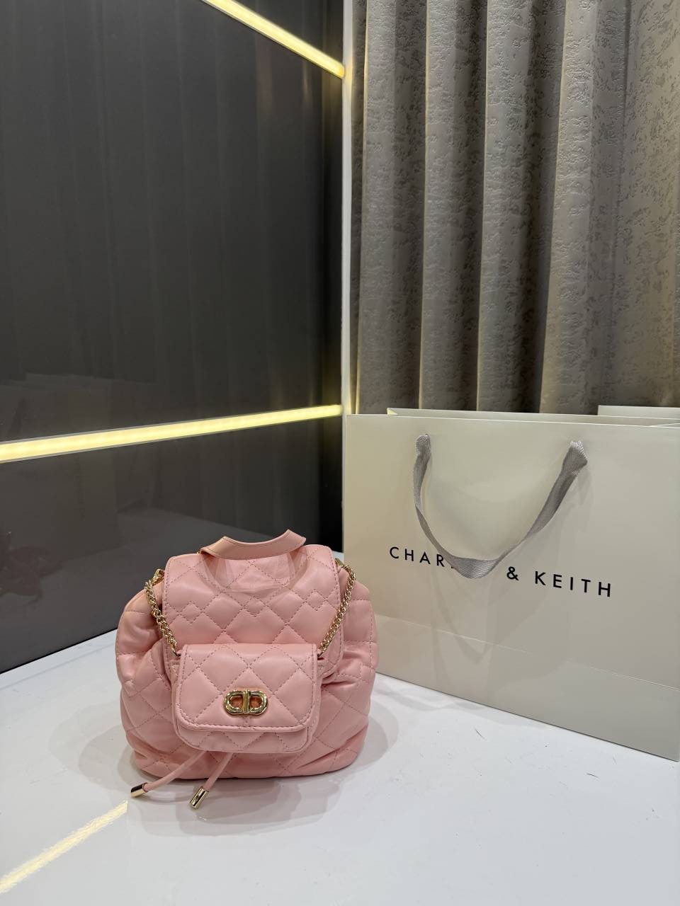 CHARLES KEITH PINK PREMIUM MINI BAGPACK EXTRA SMALL POUCH WITH PREMIUM PACKING CARRY BAG & LABUBU DOLL FREE