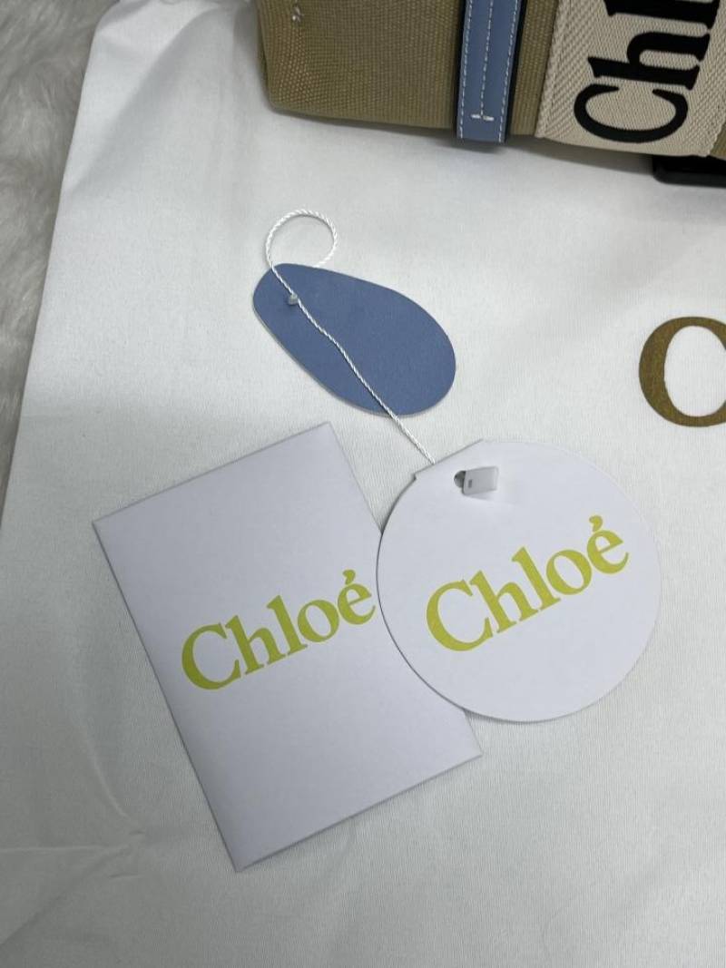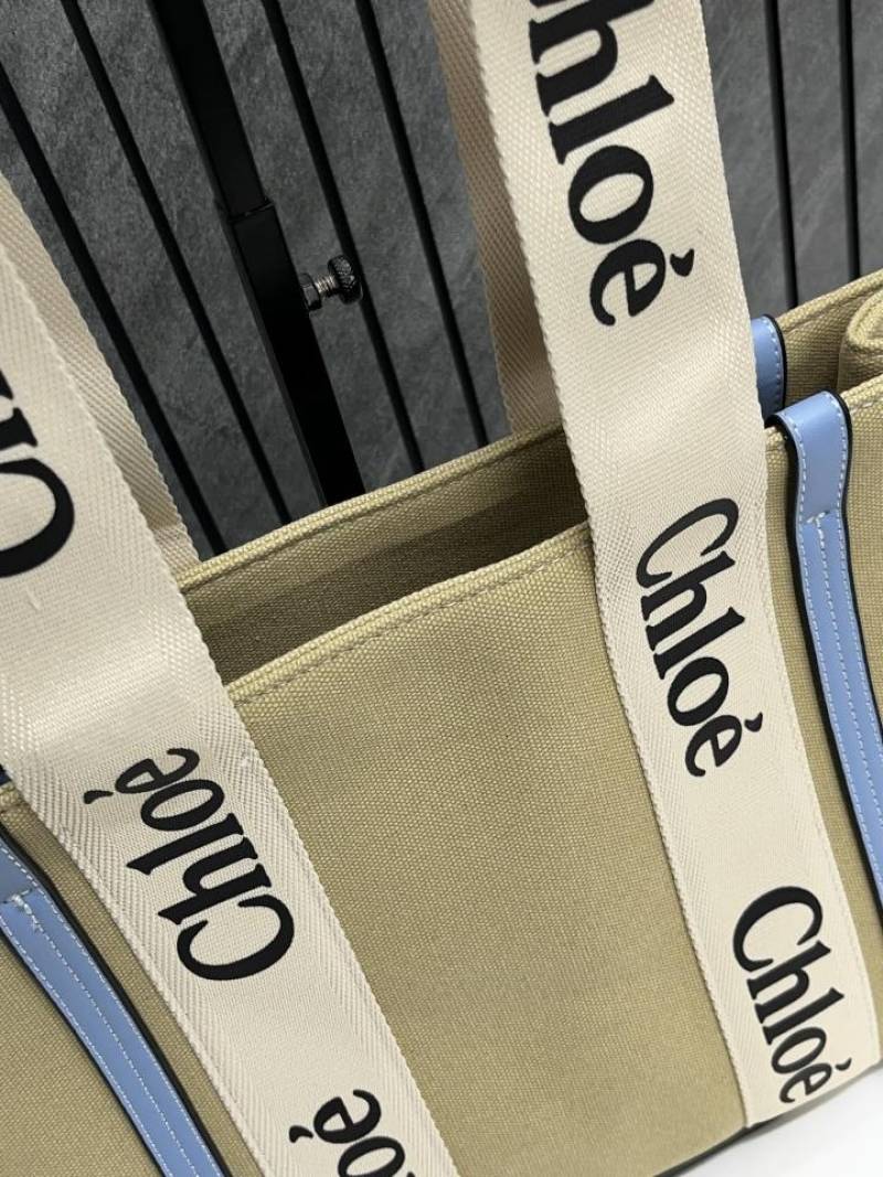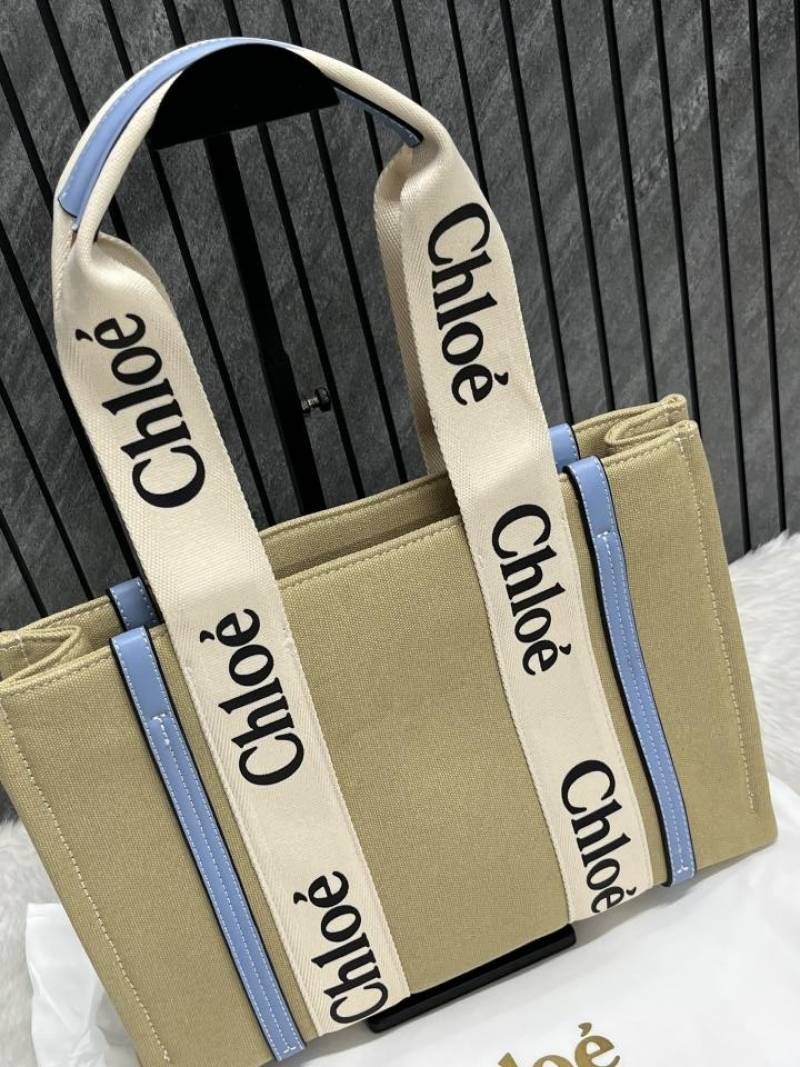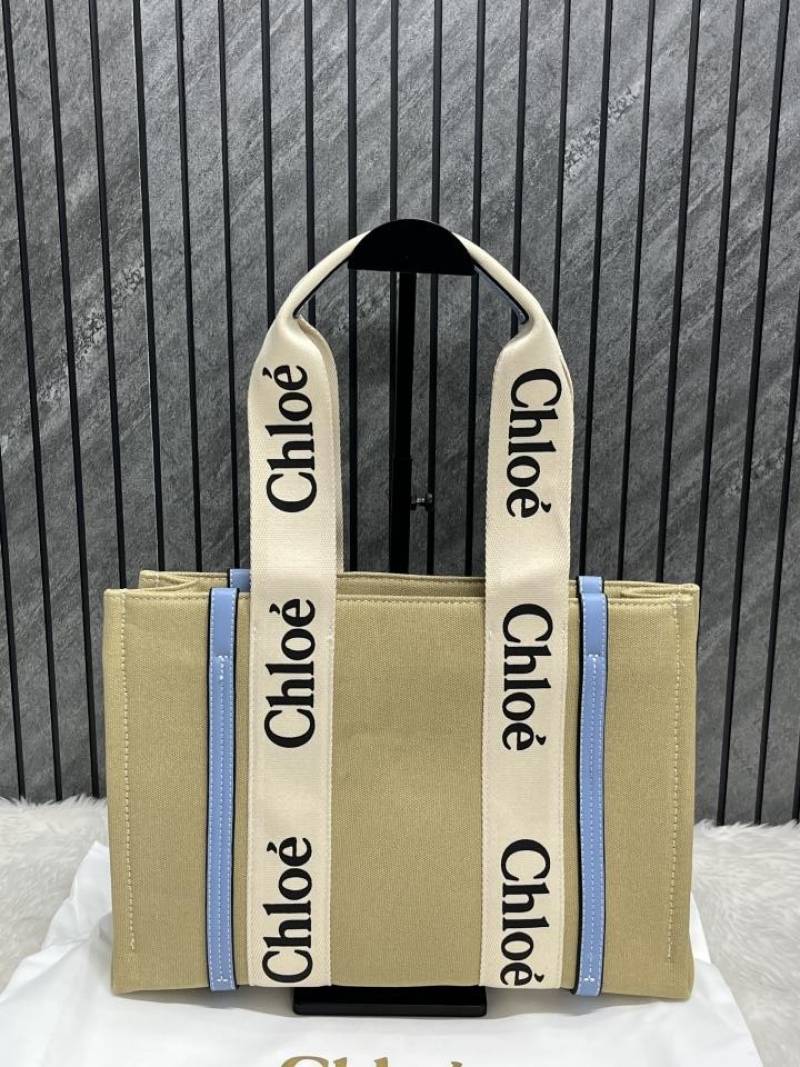 Chloe Blue Medium Canvas Woody Tote With Dust Cover Blue