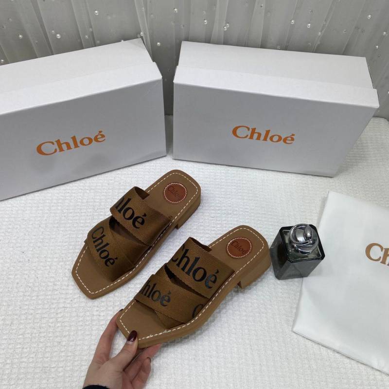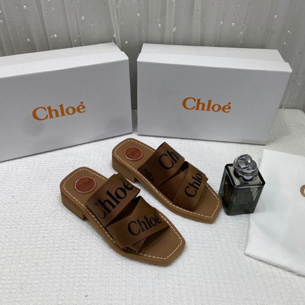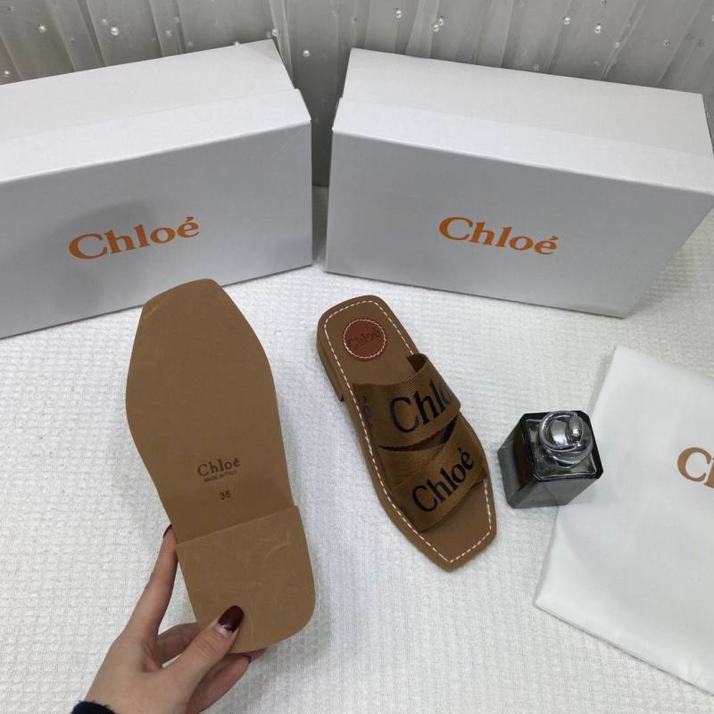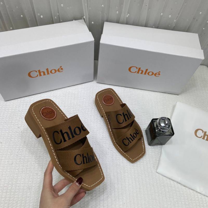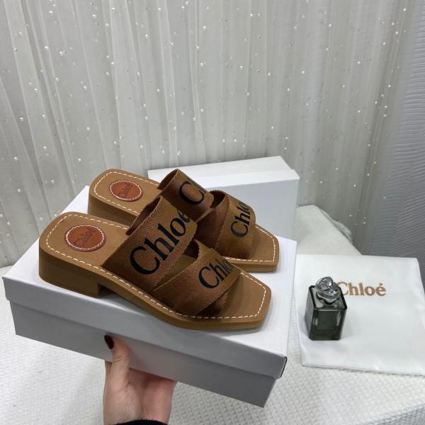 Chloe Premium Woody Mid Heel Slides With OG Box Dust Cover Tan Brown CH19
