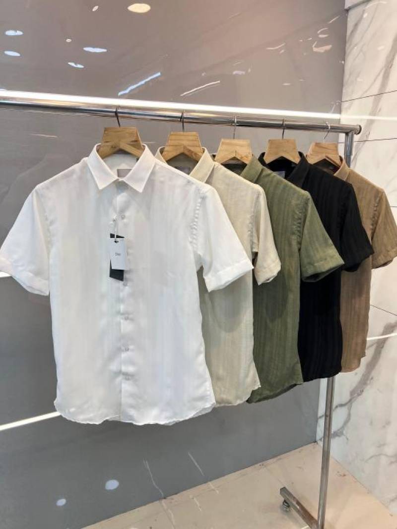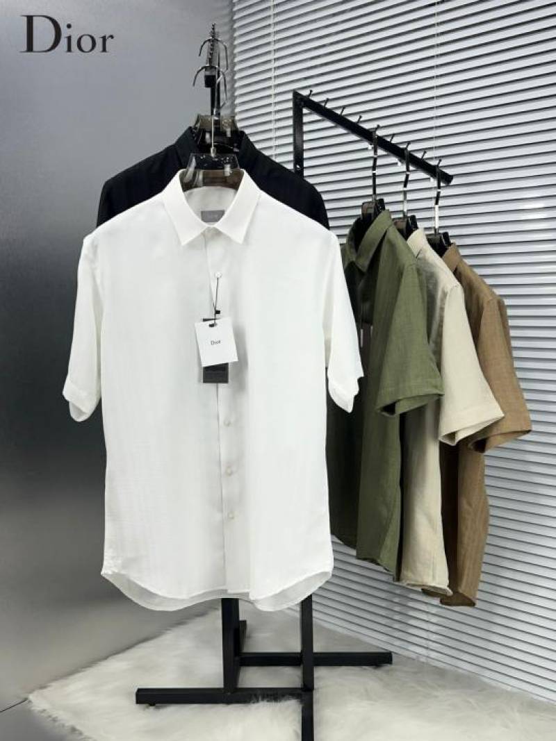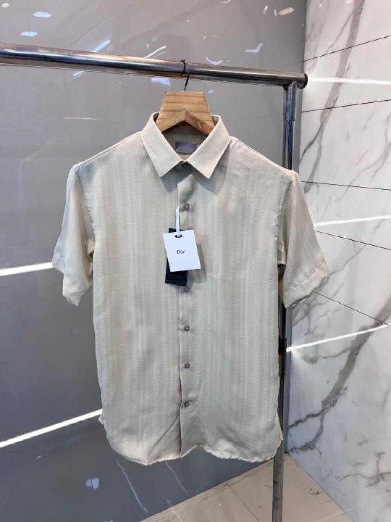 Christian Dio r Beige Premium Half Sleeves Shirt Linen With custom Branded Button Tagging And Brand Carry Bag 2356