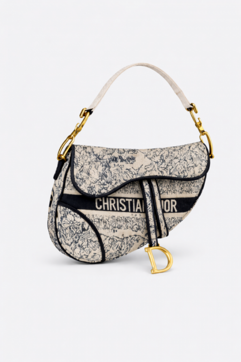 CHRISTIAN DIO_R SADDLE WHITE OBLIQUE EMBROIDERY BAG - 9088