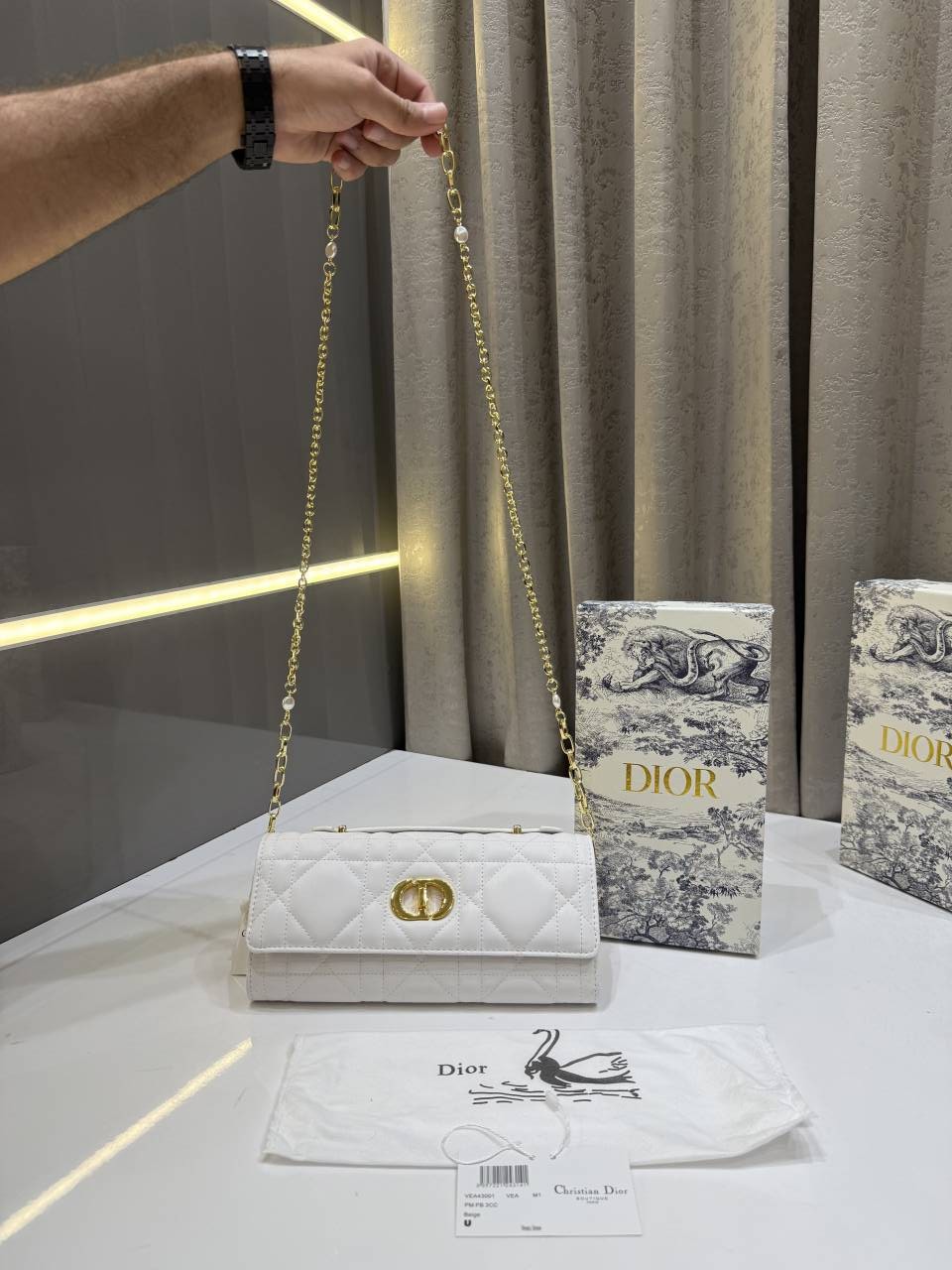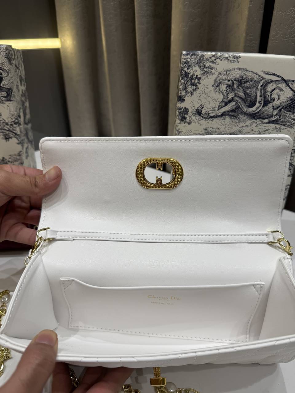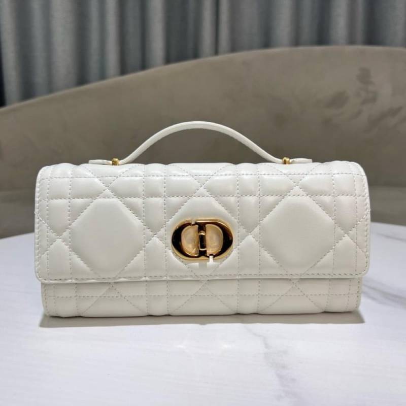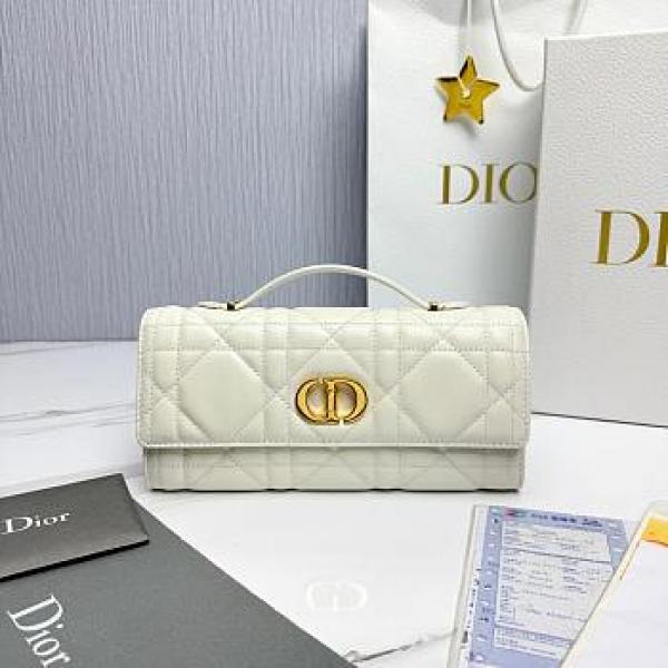 CHRISTIAN DIO.R WHITE LAMBSKIN DIO.R MISS CARO TOP HANDLE BAG WITH OG BOX