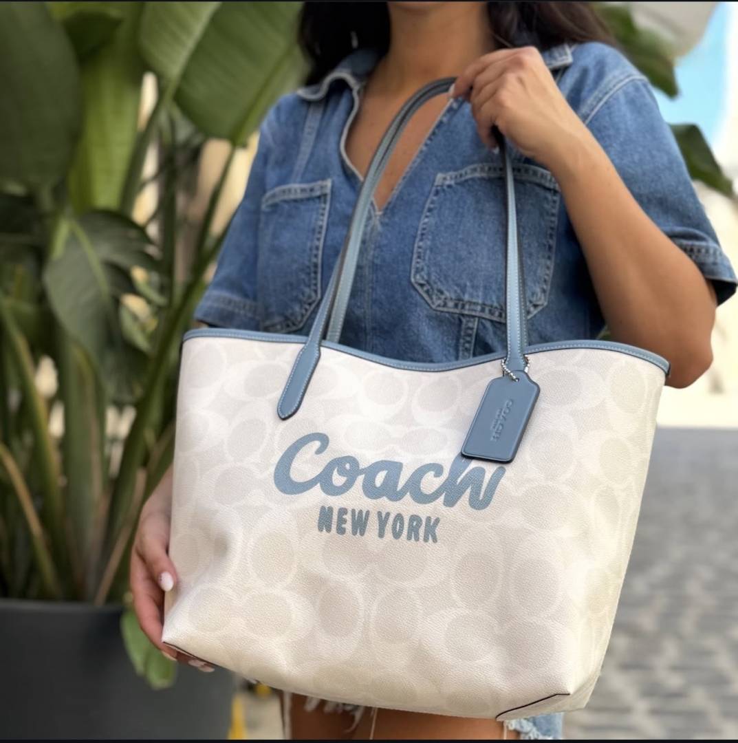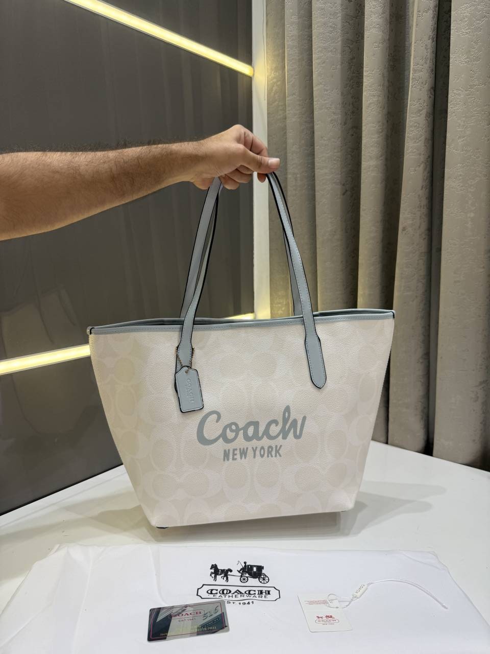 COAC.H CITY WHITE TOTE GRAPHIC BAG PREMIUM WITH DUST BAG