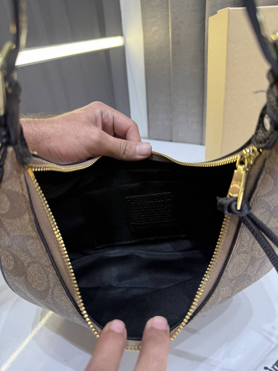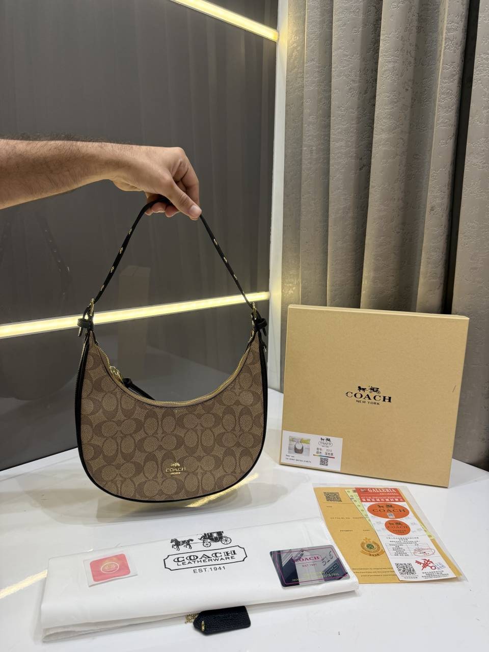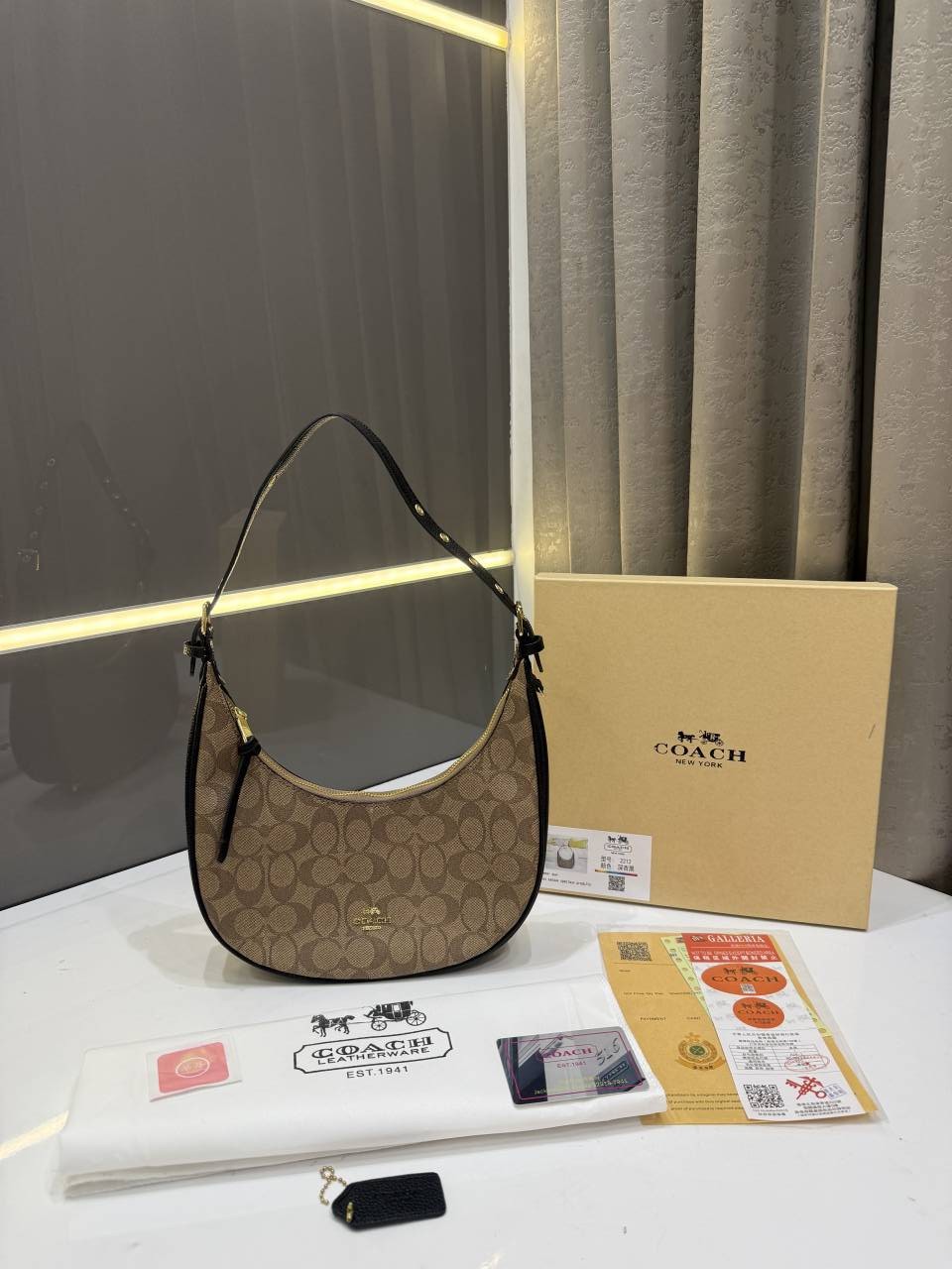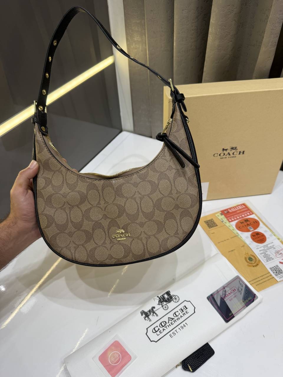 COAC.H KLEO HOBO CANVAS SIGNATURE BROWN WITH OG BOX