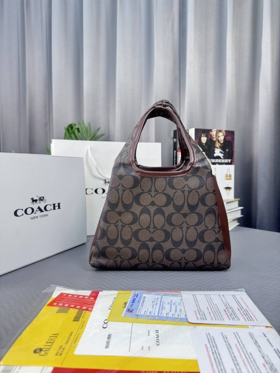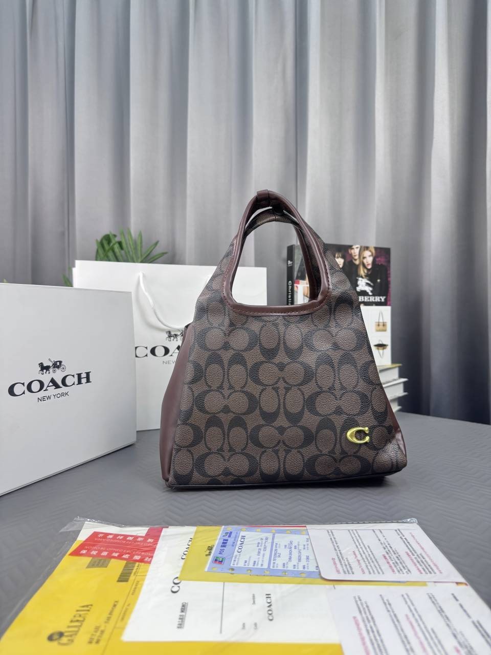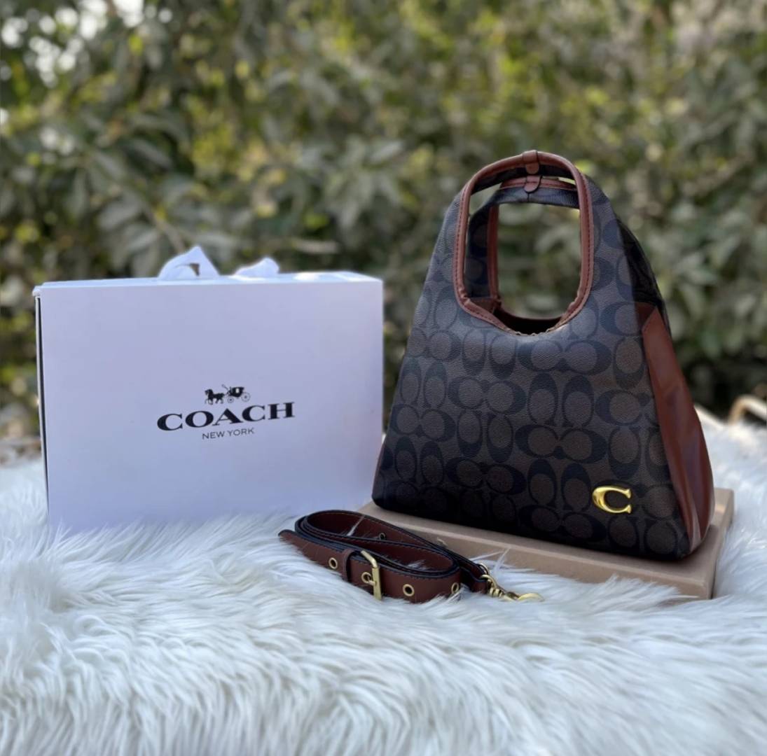 COAC_H LANA SIGNATURE BROWN POLISHED PEBBLE LEATHER HAND BAG - 8890