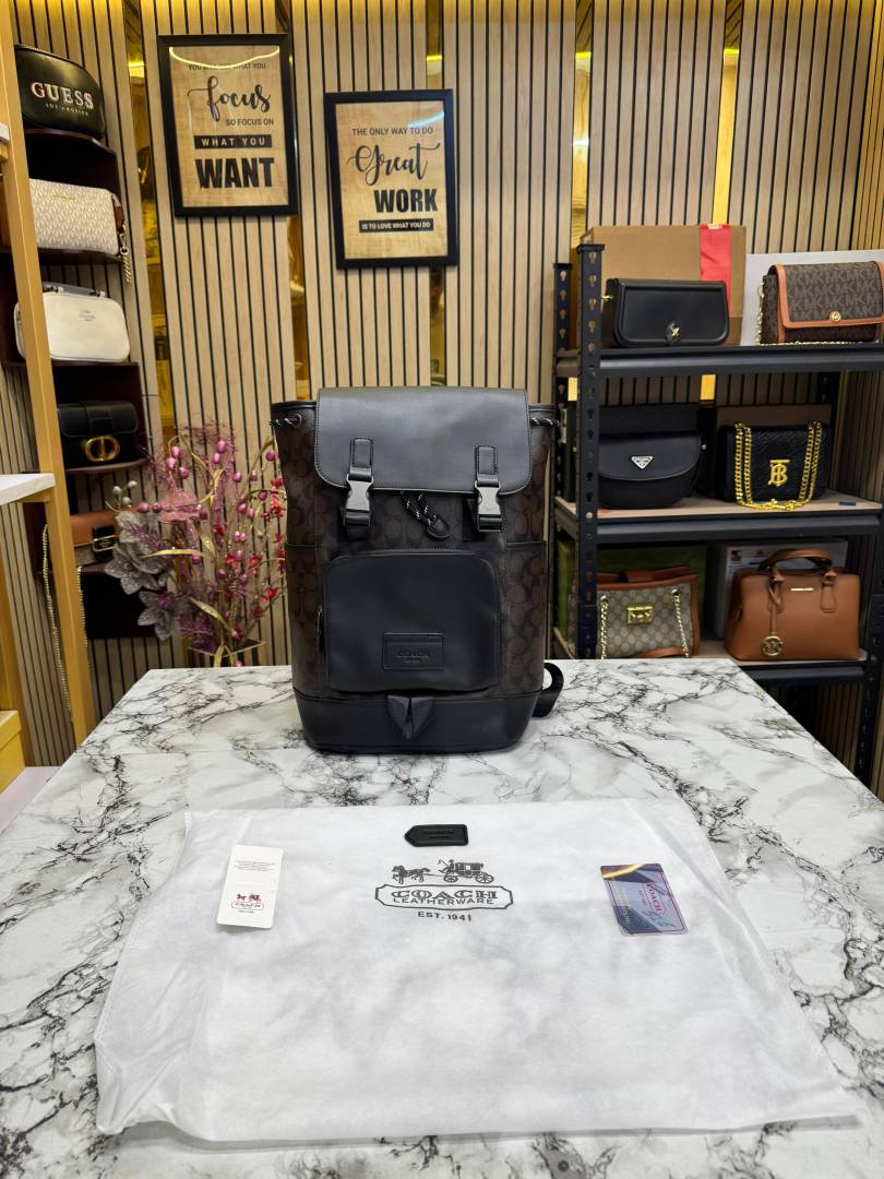 Coac_h Rivington Backpack In Signature Canvas With Dust Bag Premium Quality As Alway (Apricot-Black)