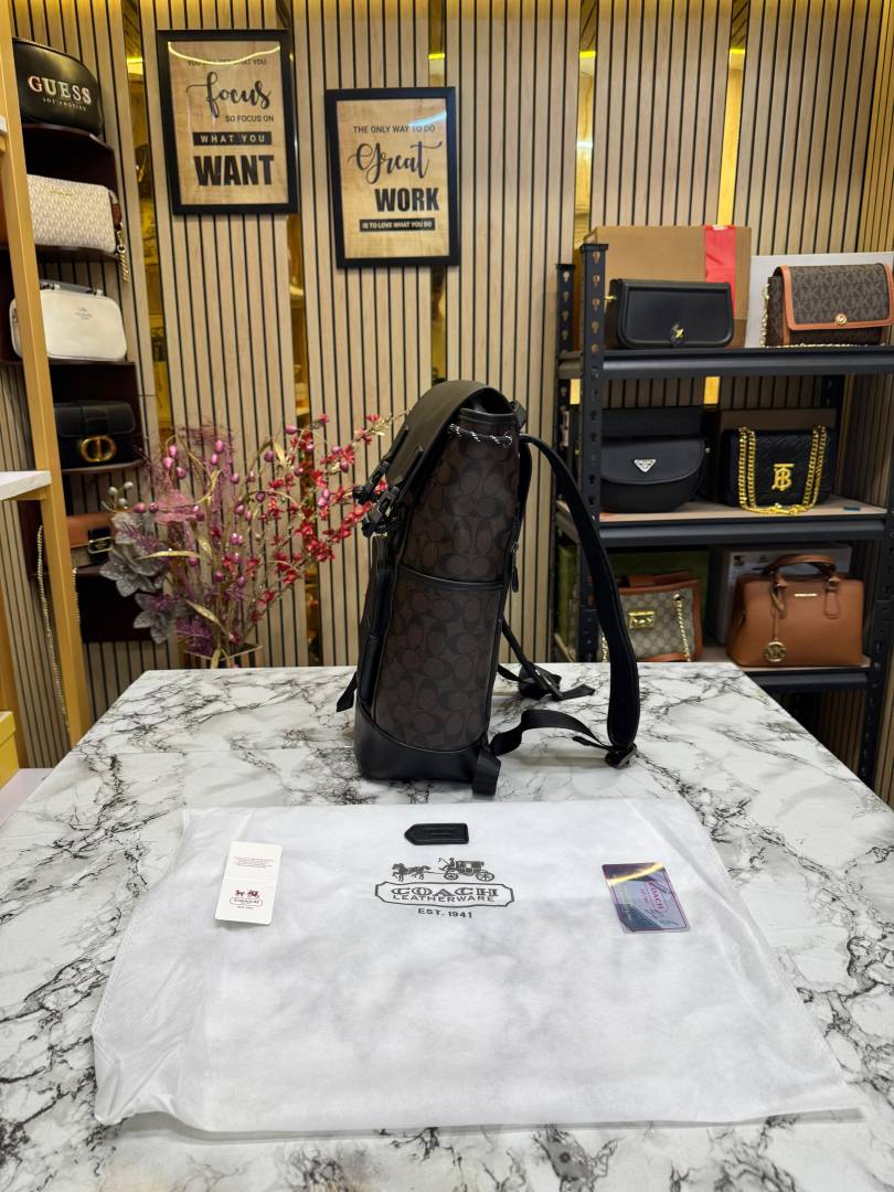 Coac_h Signature Canvas Flap Backpack With Dust Bag (Coffee)