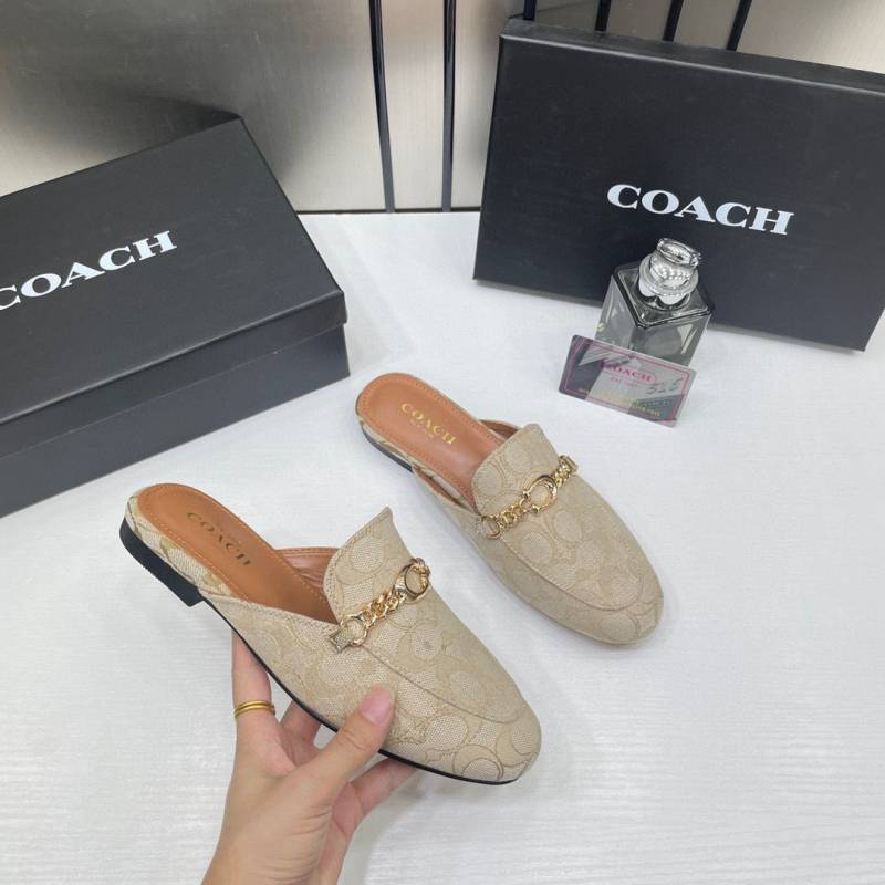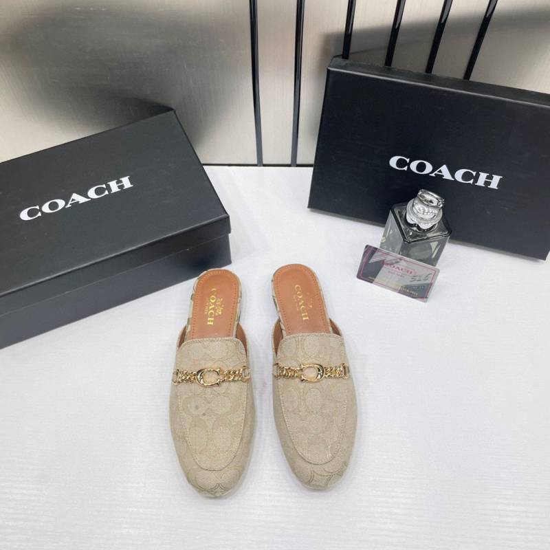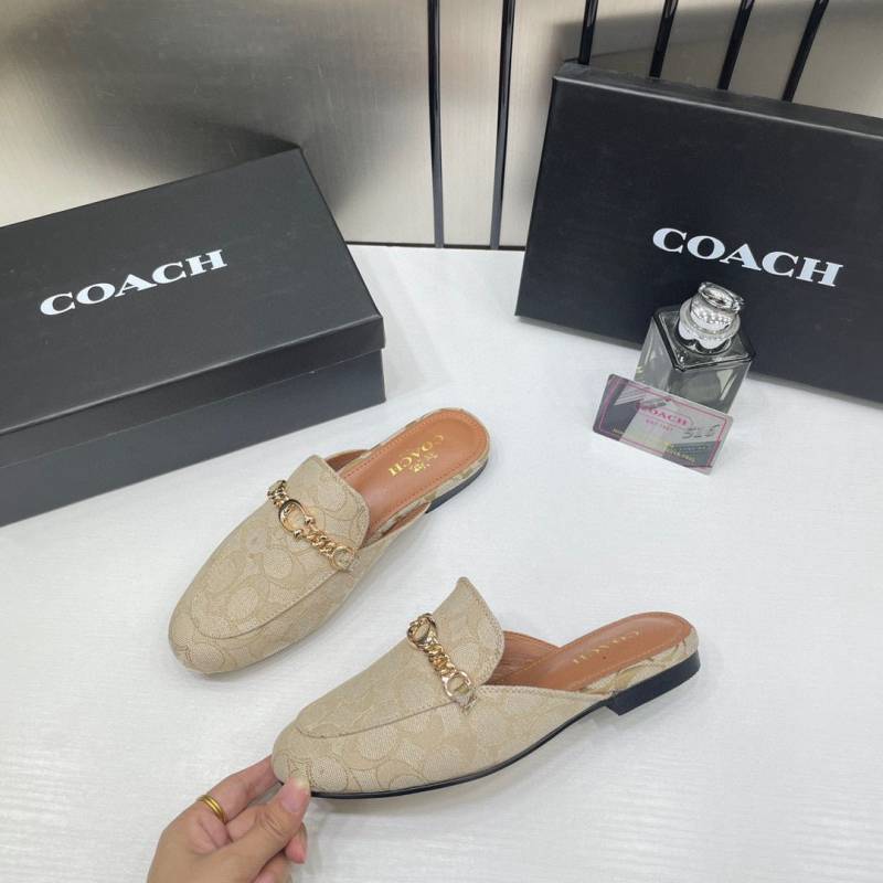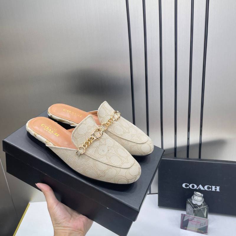 Coach_Samie_Beige_Mules_Slides_For_Women_With_Original_Box_And_Carry_Bag