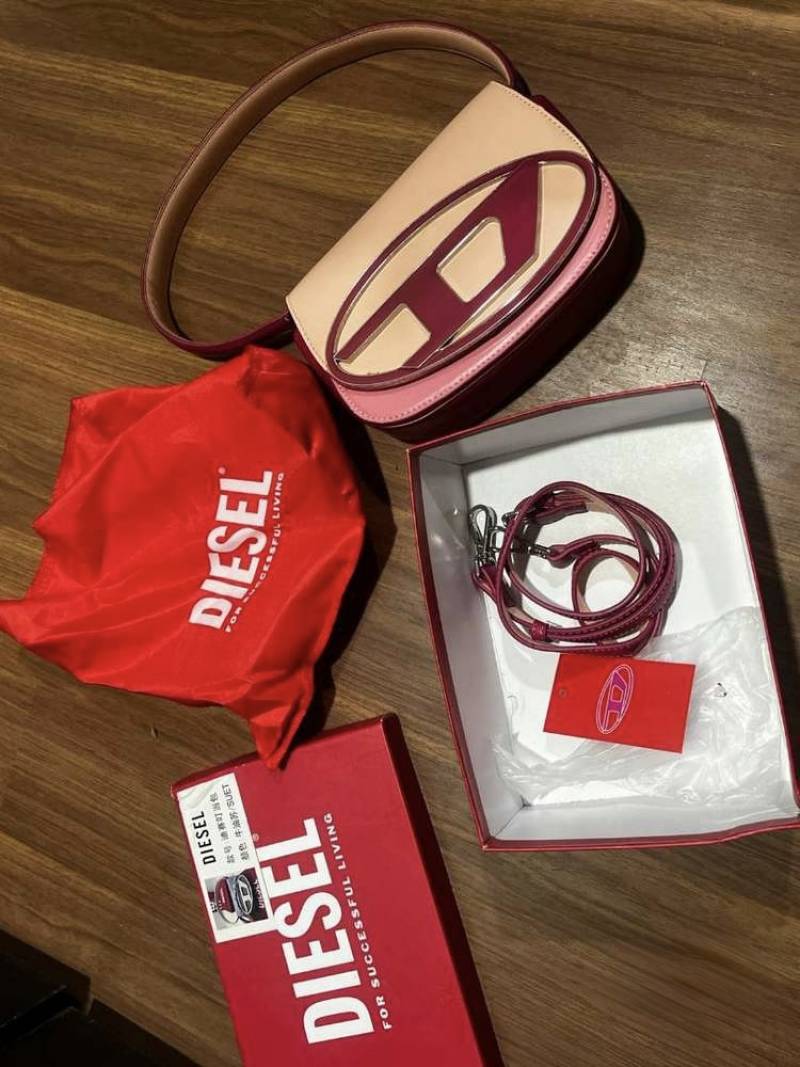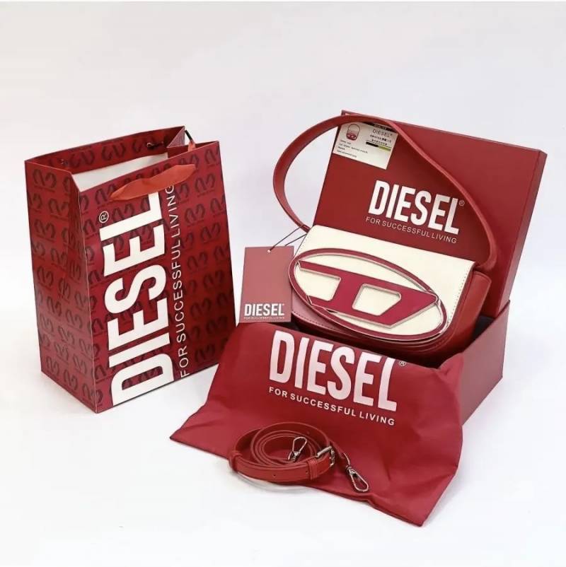 DIESE.L 1DRSHOULDER BAG CREAMOF.F WHITE WITH RED RED TRIN PREMIUM SAME PACKING