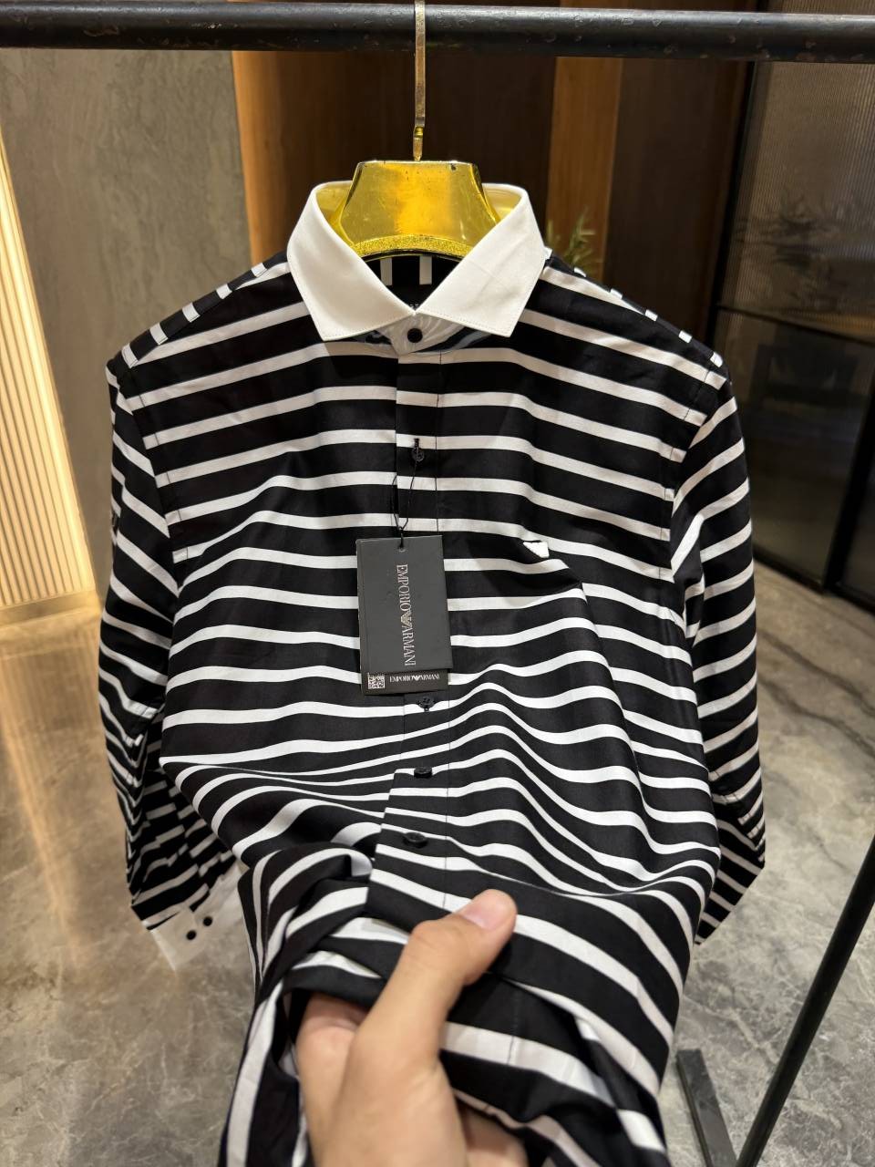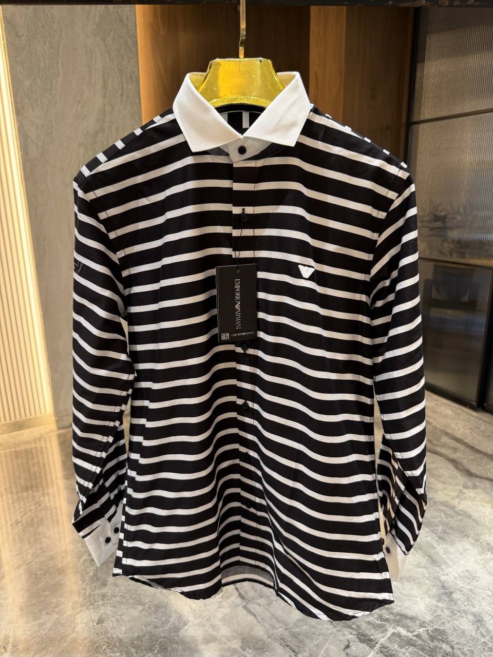 EMPORIO ARMAN_i BLACK STRIPS WHITE COLLAR PREMIUM STORE ARTICLE SHIRT