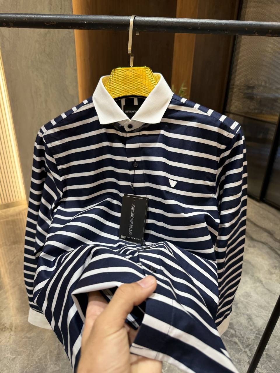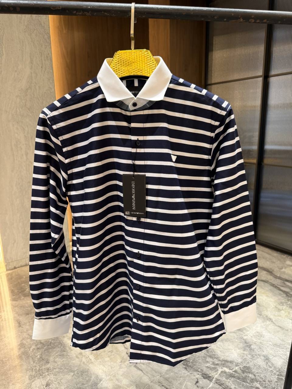 EMPORIO ARMAN_i BLUE STRIPS WHITE COLLAR PREMIUM STORE ARTICLE SHIRT