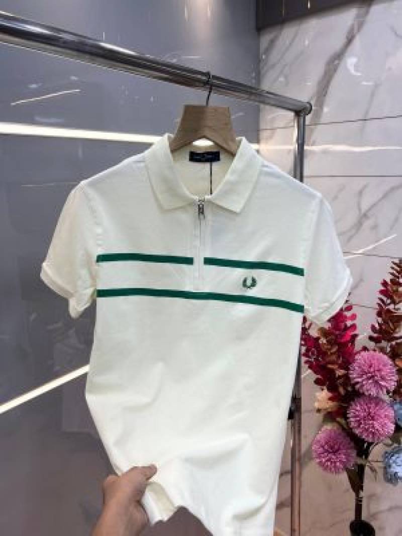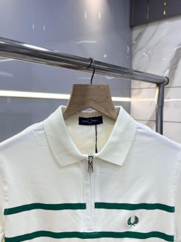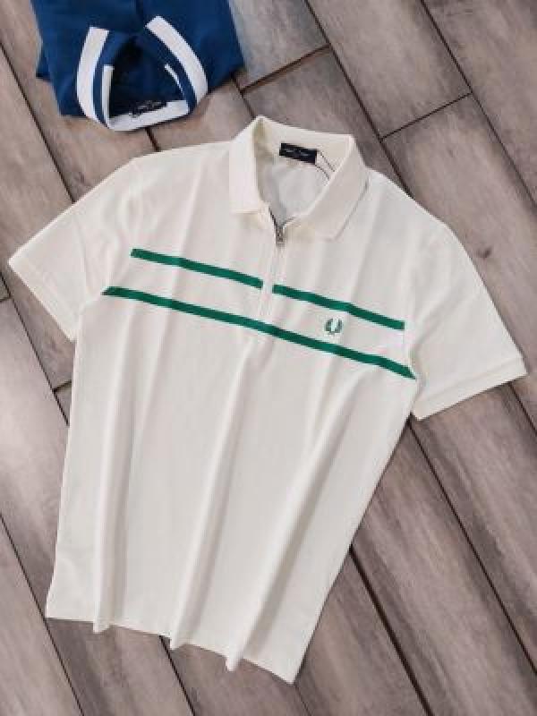 Fred Perr y off-white Premium Cotton Pique fabric Polo Tshirt with Front Design and Embroidered Logo Zip Style 3632