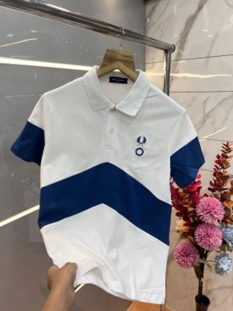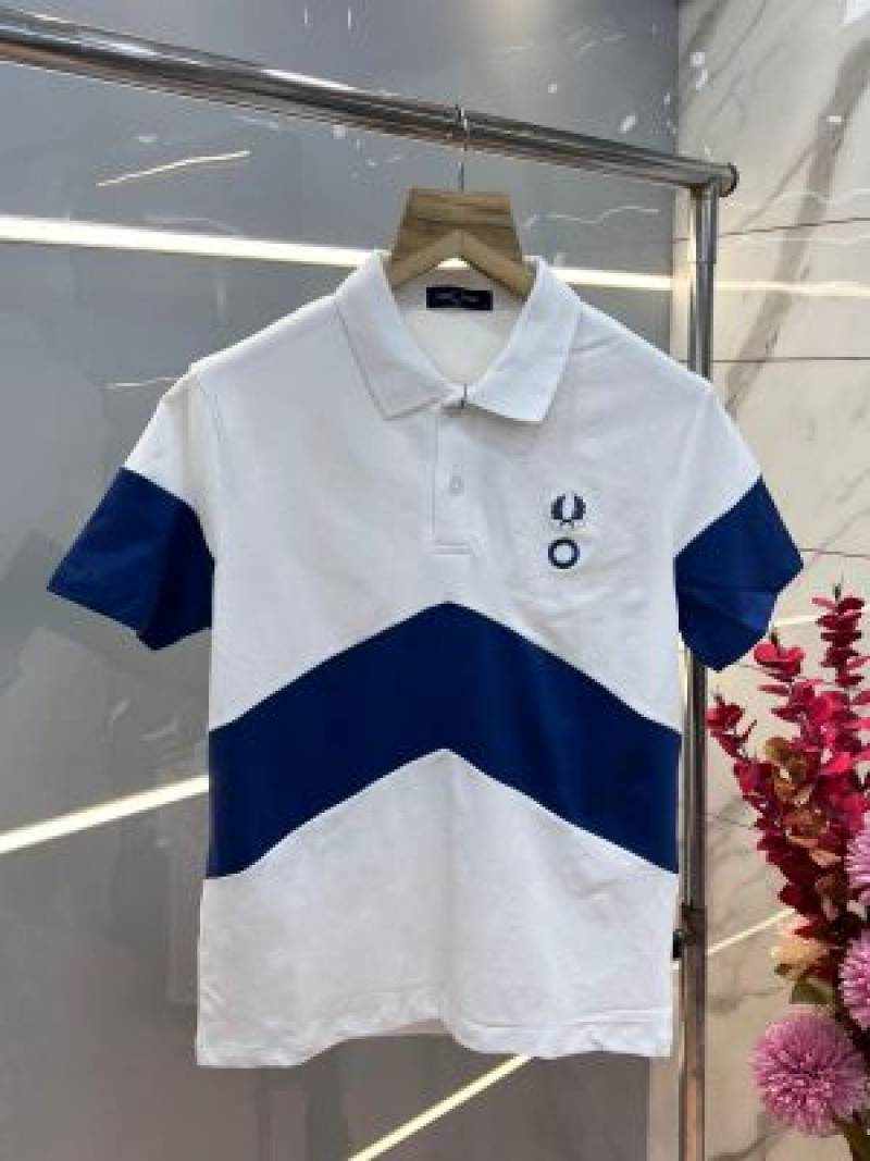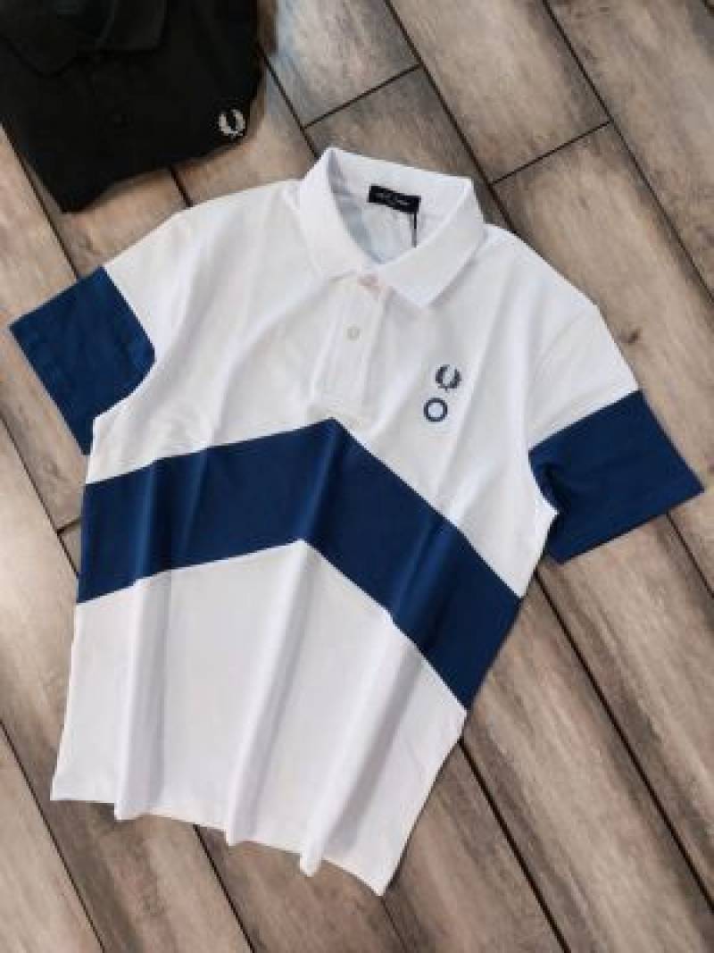 Fred Perr y White Premium Cotton Pique fabric Polo Tshirt with Front Design and Embroidered Logo 3634