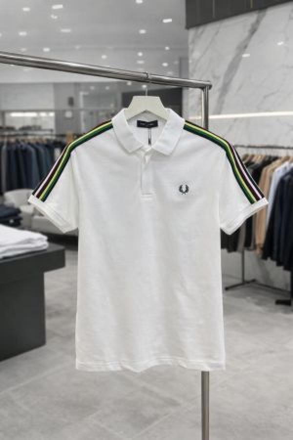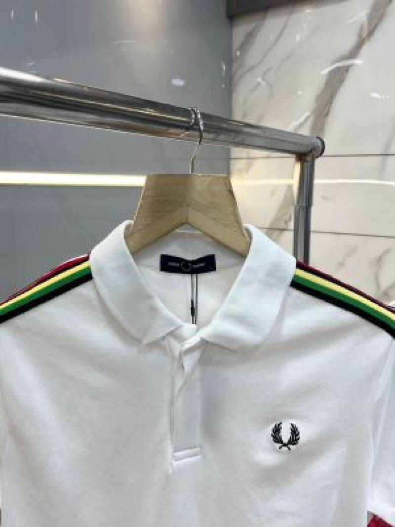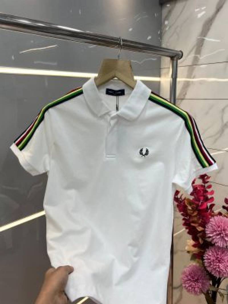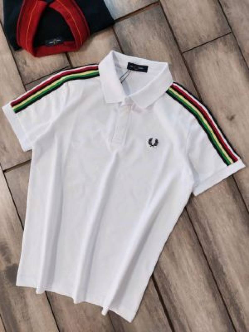 Fred Perr y white Premium Cotton Pique fabric Polo Tshirt with shoulder Design and Embroidered Logo 3630