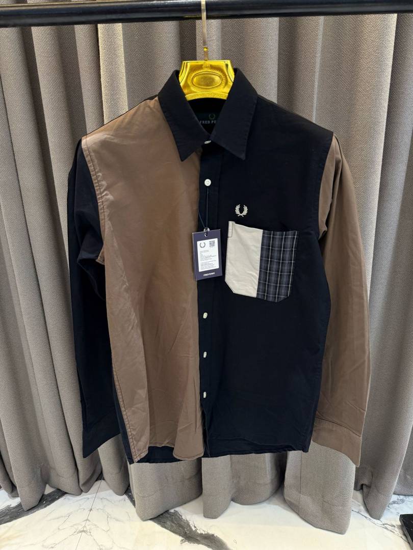 Fred Perry Chest Logo Full Sleeves Shirt Navy Brown