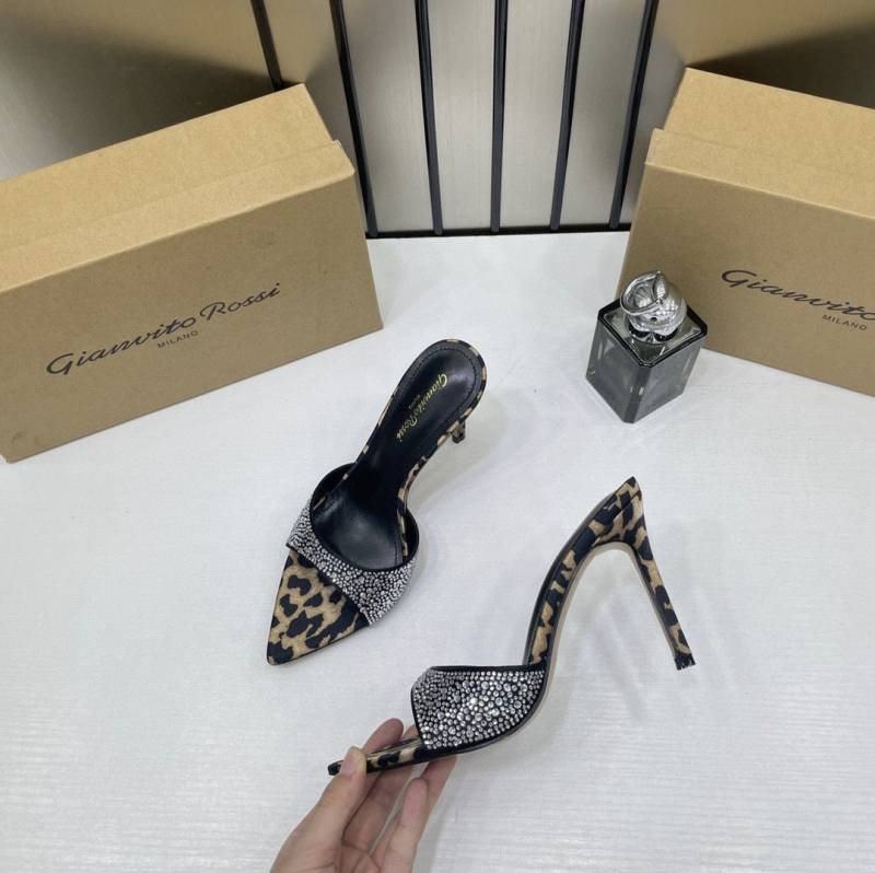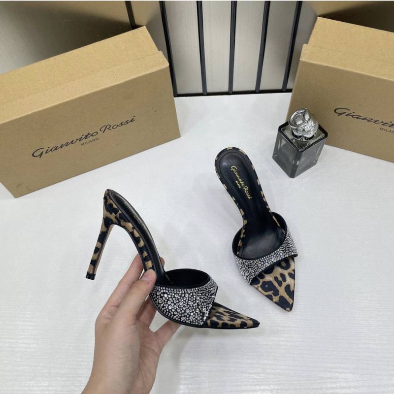 Gianvito Rossi Milano Heel Crystal Rhimestone Pointed Toe Heels For Women With Original Box