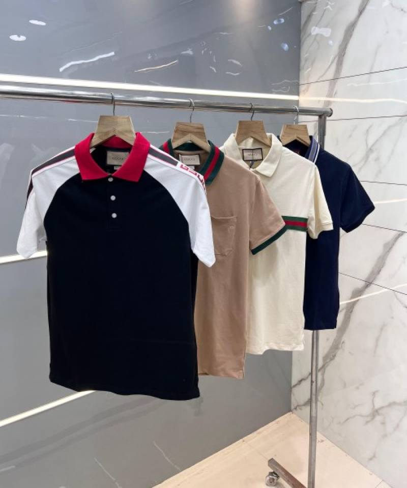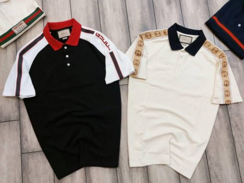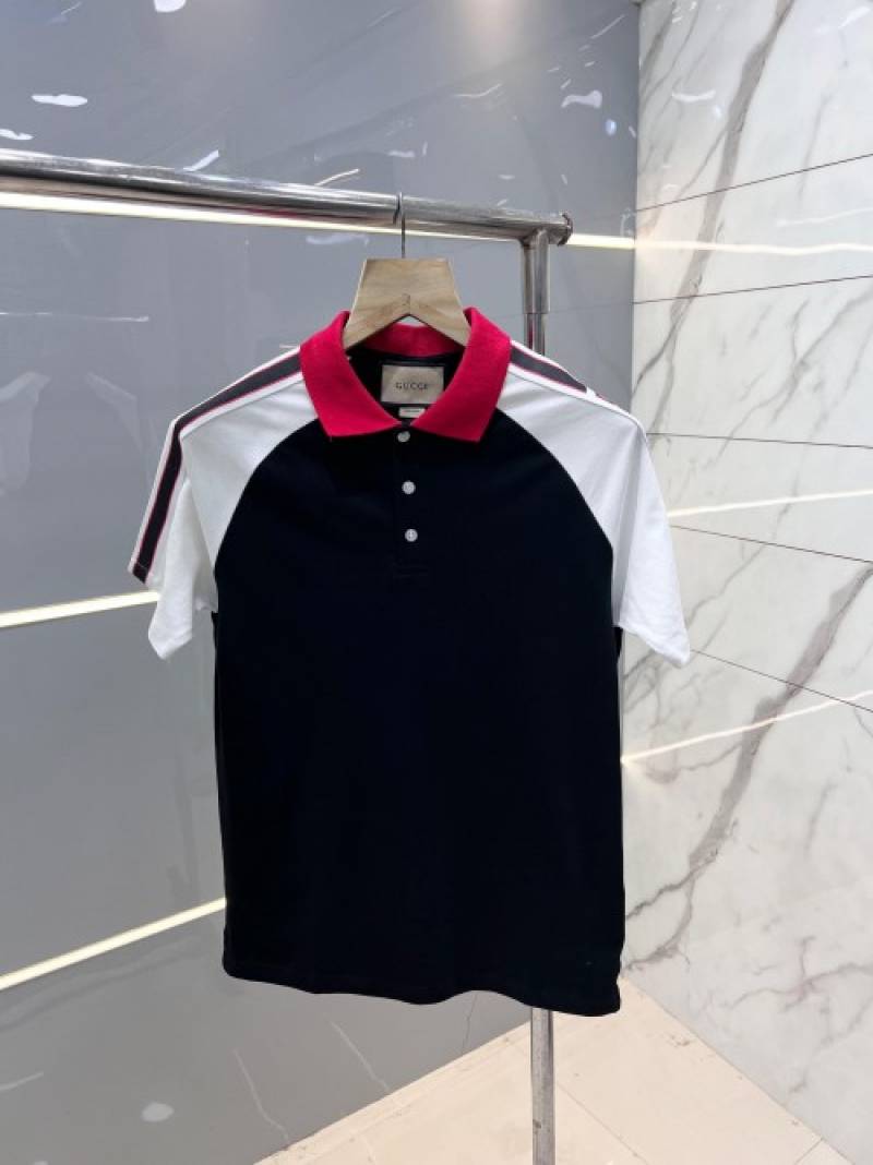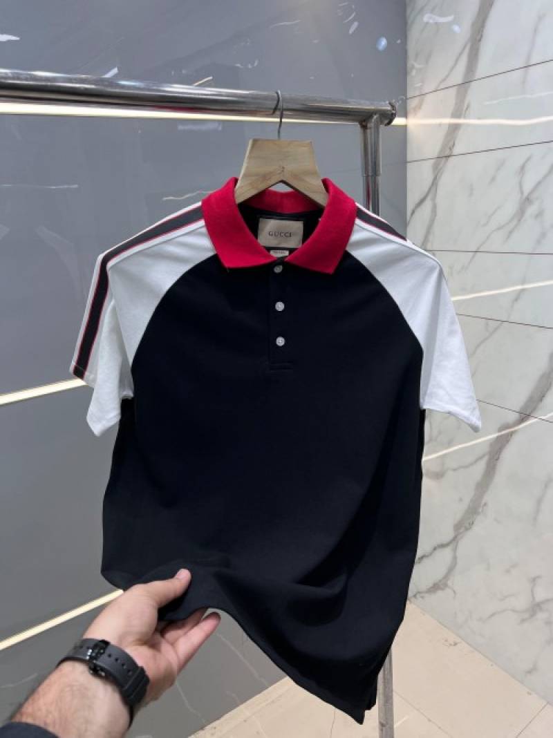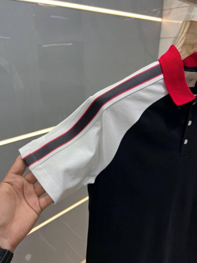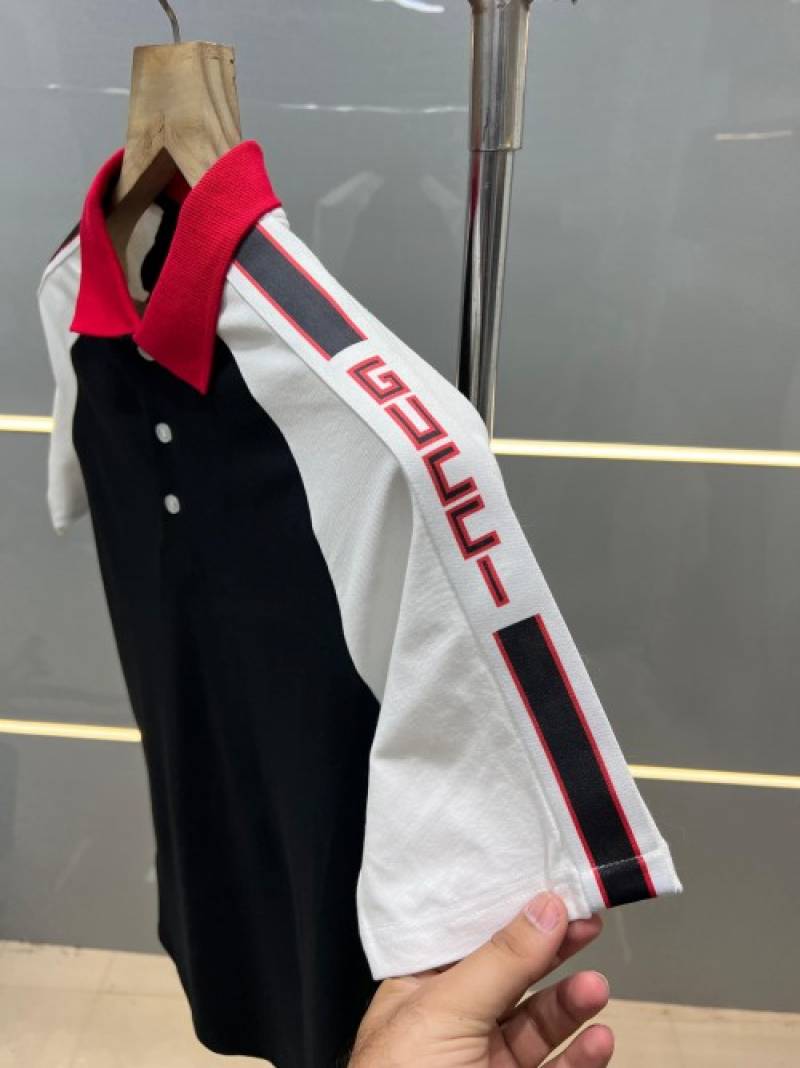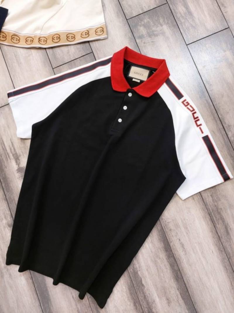 Gucc i Black Premium Polo T shirt With 240 gsm interlock cotton lycra fabric with Shoulder Logo Strips 2629