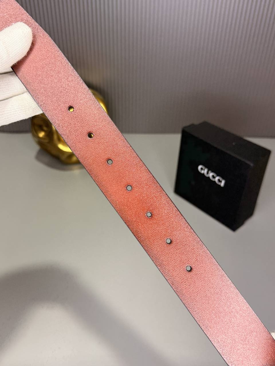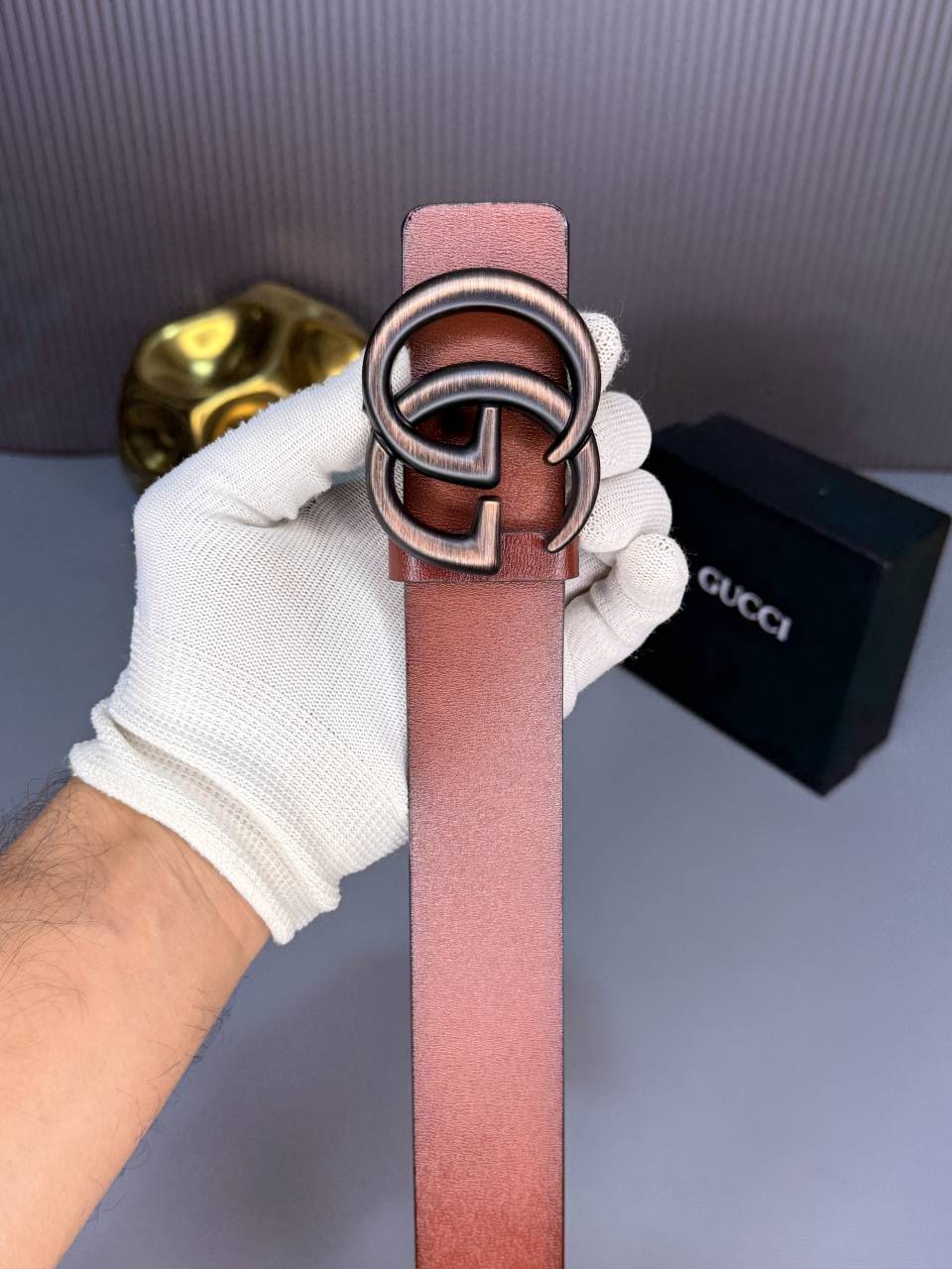 Gucc_i brown belt with golden textured buccal G-631 with og box