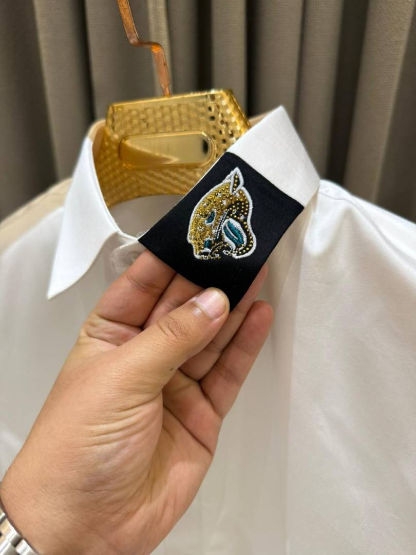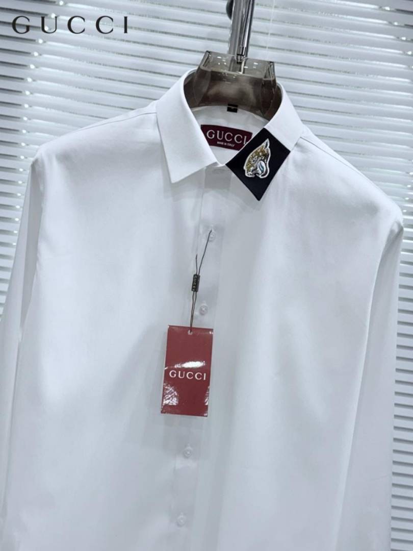 Gucc_i Collar Tiger Diamond Box Pack Full Sleeves Shirt White