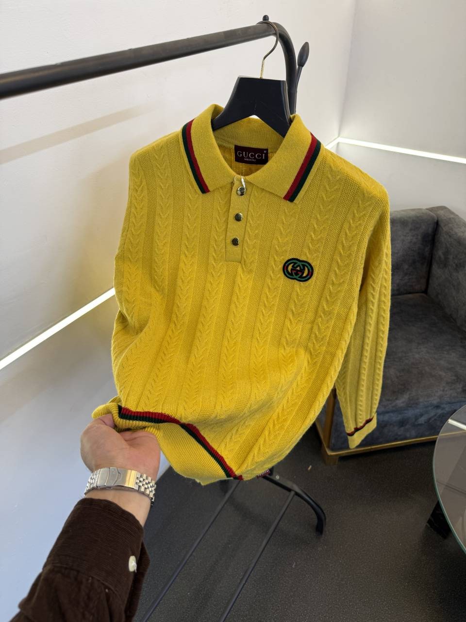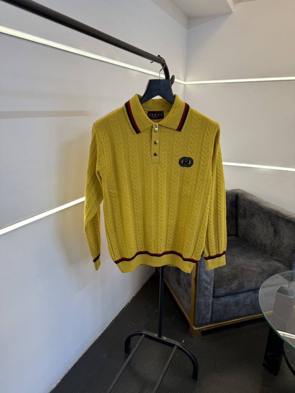 Gucc i knitted imported sweatshirt with brand button and logo on chest yellow gold