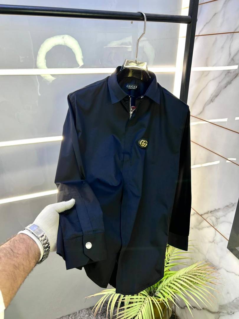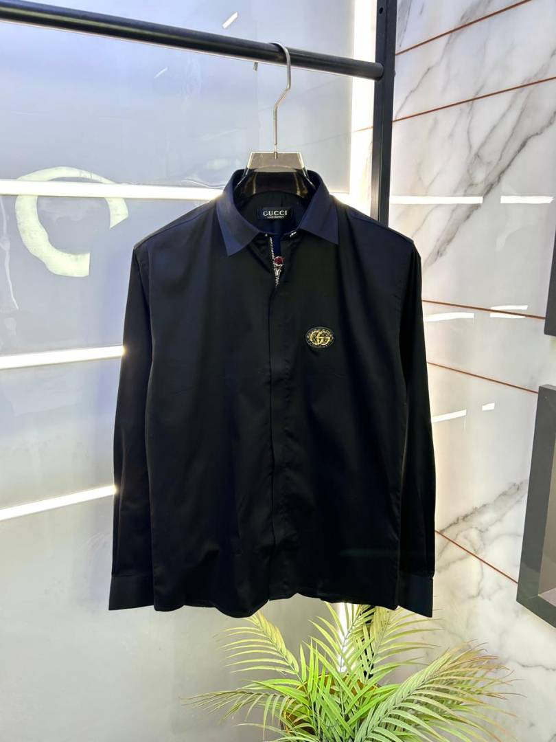 Gucc i Metal Logo Imported Black Super Premium Zipper Shirt F3225-BL