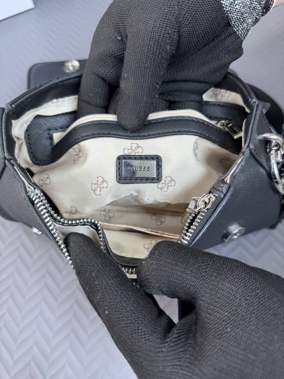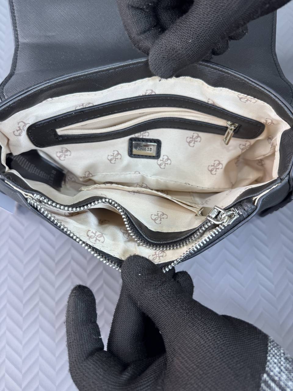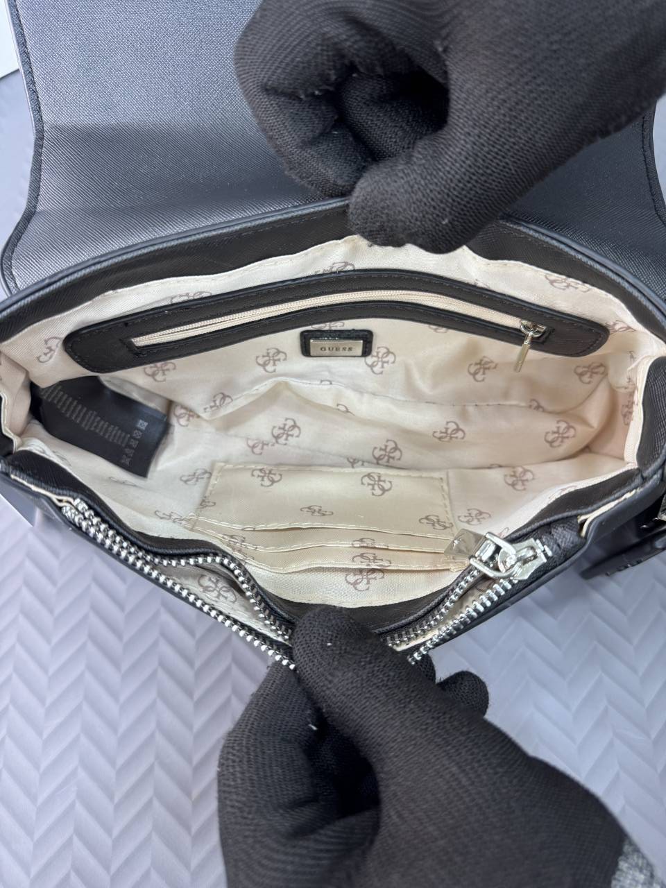 GUESS MONOGRAM BLACK HAND BAG WITH BRAND BOX - G21